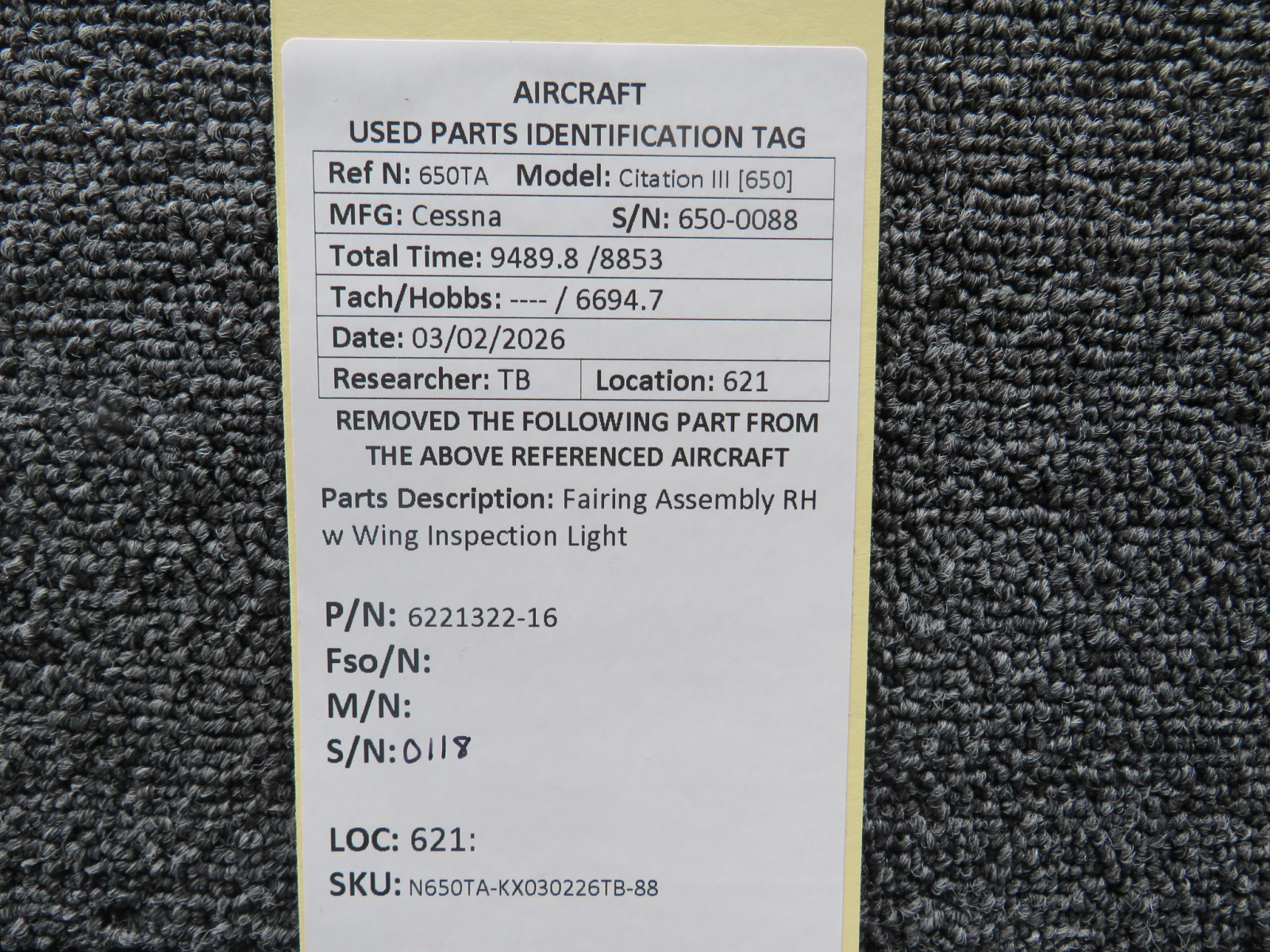 Every part is carefully inspected throughout our process and several times before it goes online. Most items are sold as-removed, just as they came off the aircraft. These parts are not functionally tested. What we do provide is clear photos, full traceability when available, pricing that reflects the as-removed condition, and a no-nonsense 90-day return window.