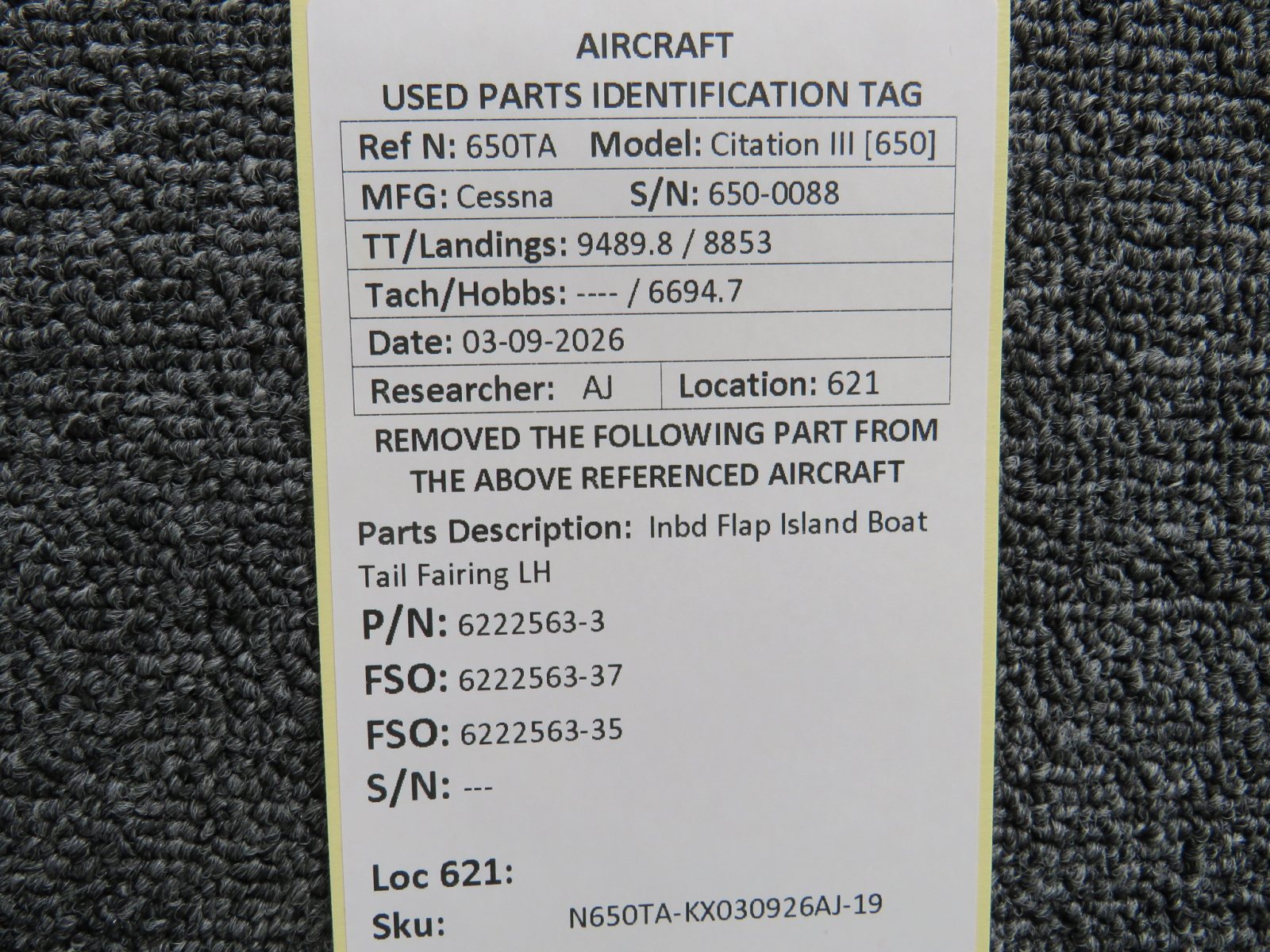 Every part is carefully inspected throughout our process and several times before it goes online. Most items are sold as-removed, just as they came off the aircraft. These parts are not functionally tested. What we do provide is clear photos, full traceability when available, pricing that reflects the as-removed condition, and a no-nonsense 90-day return window.