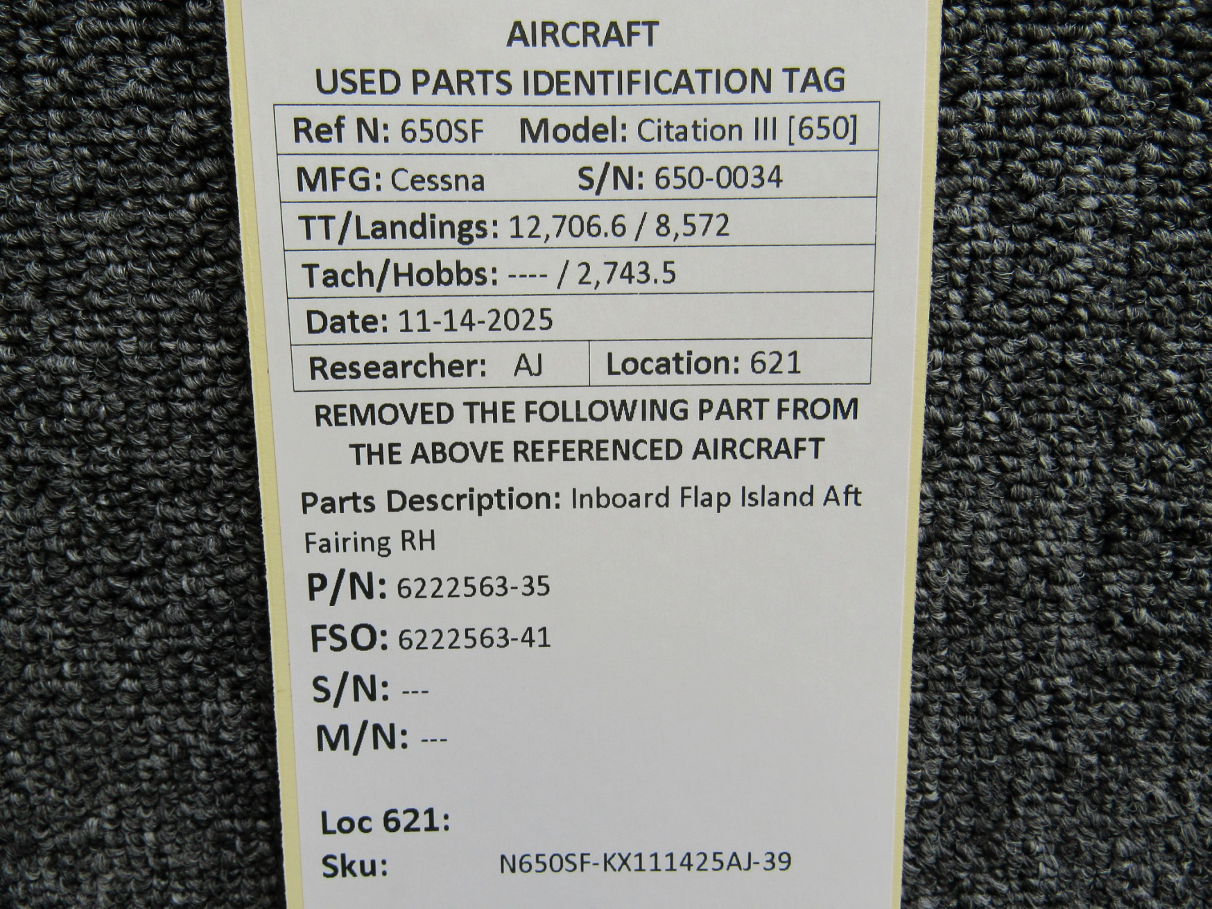Unless specifically noted, most of our used airplane parts are sold in the condition they were removed, which means you should expect the usual signs of wear and tear.