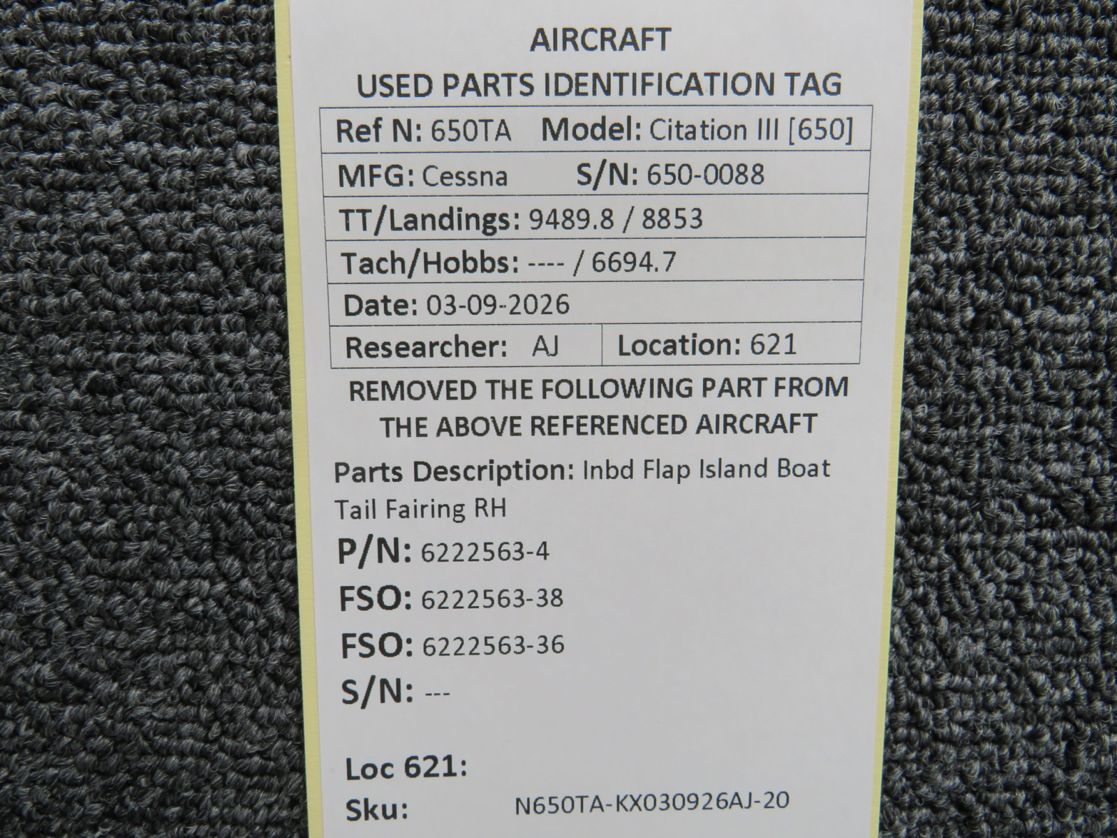 Every part is carefully inspected throughout our process and several times before it goes online. Most items are sold as-removed, just as they came off the aircraft. These parts are not functionally tested. What we do provide is clear photos, full traceability when available, pricing that reflects the as-removed condition, and a no-nonsense 90-day return window.