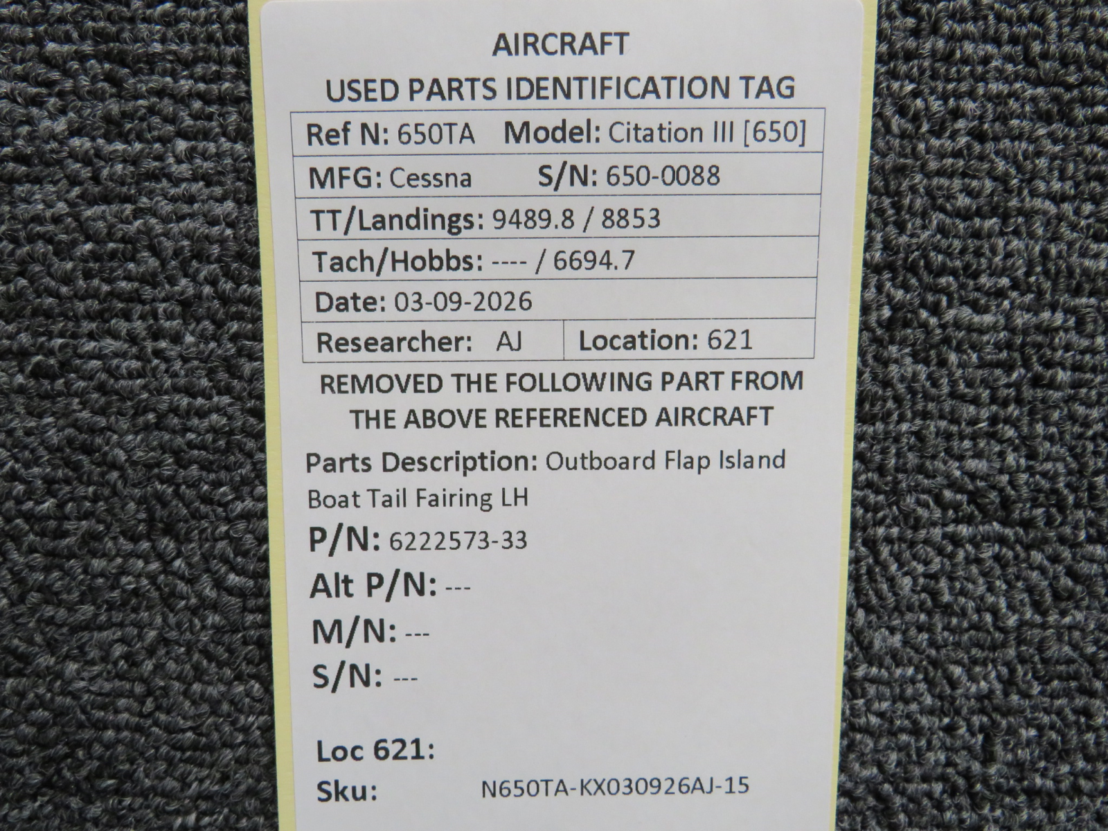 Every part is carefully inspected throughout our process and several times before it goes online. Most items are sold as-removed, just as they came off the aircraft. These parts are not functionally tested. What we do provide is clear photos, full traceability when available, pricing that reflects the as-removed condition, and a no-nonsense 90-day return window.