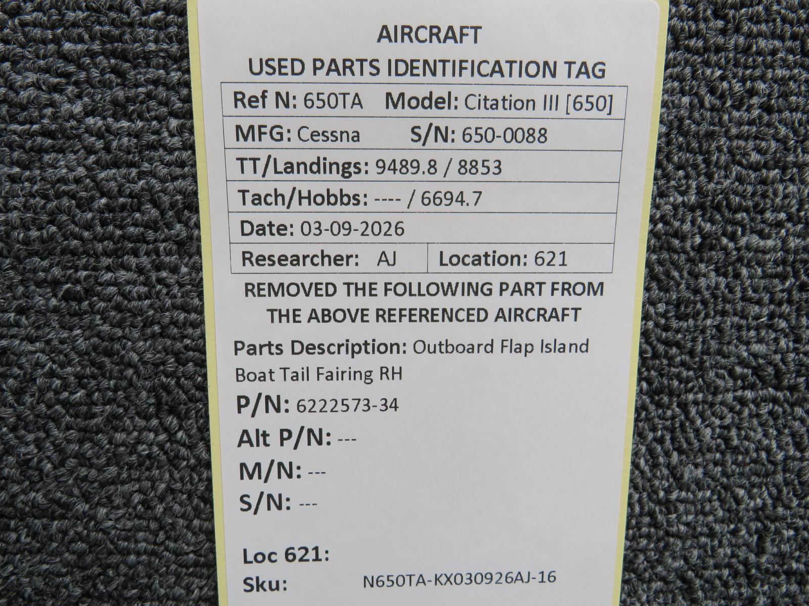 Every part is carefully inspected throughout our process and several times before it goes online. Most items are sold as-removed, just as they came off the aircraft. These parts are not functionally tested. What we do provide is clear photos, full traceability when available, pricing that reflects the as-removed condition, and a no-nonsense 90-day return window.