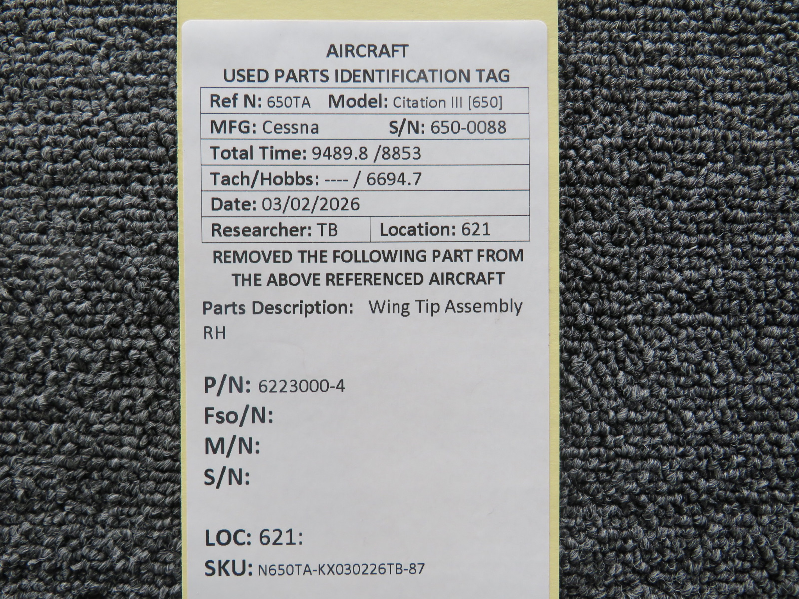 Every part is carefully inspected throughout our process and several times before it goes online. Most items are sold as-removed, just as they came off the aircraft. These parts are not functionally tested. What we do provide is clear photos, full traceability when available, pricing that reflects the as-removed condition, and a no-nonsense 90-day return window.