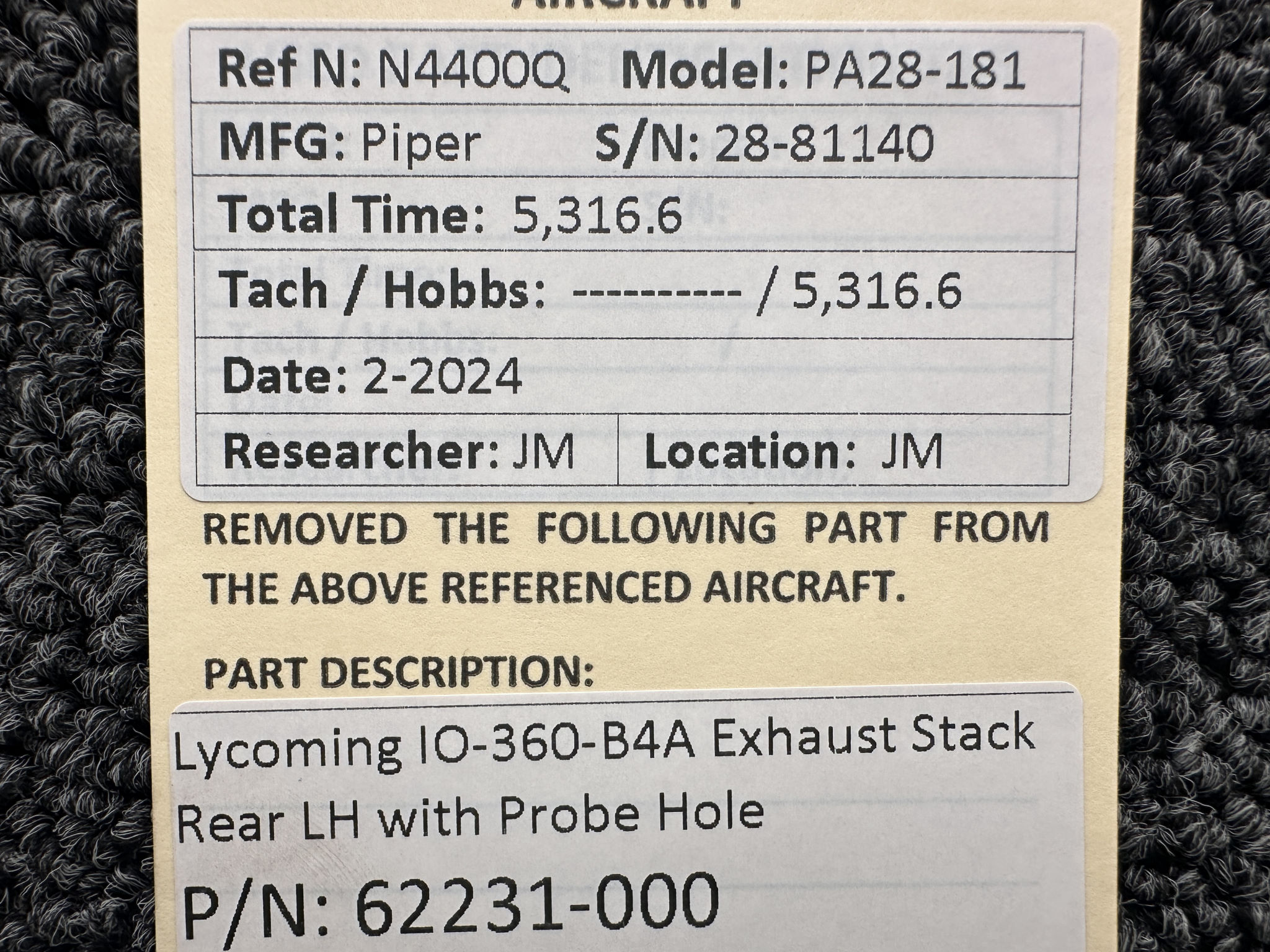 - Removed From: Lycoming IO-360-B4A