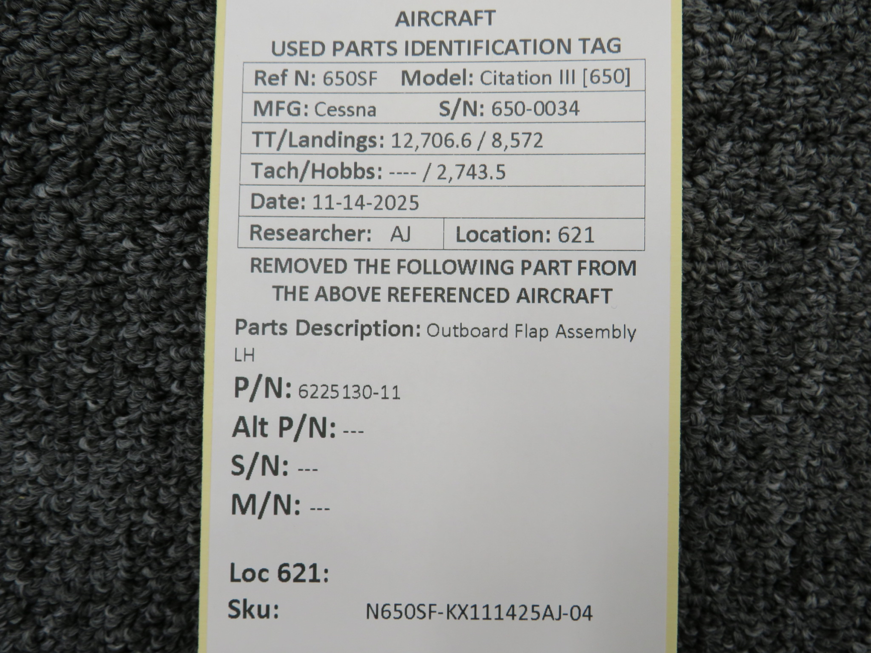 Unless specifically noted, most of our used airplane parts are sold in the condition they were removed, which means you should expect the usual signs of wear and tear.