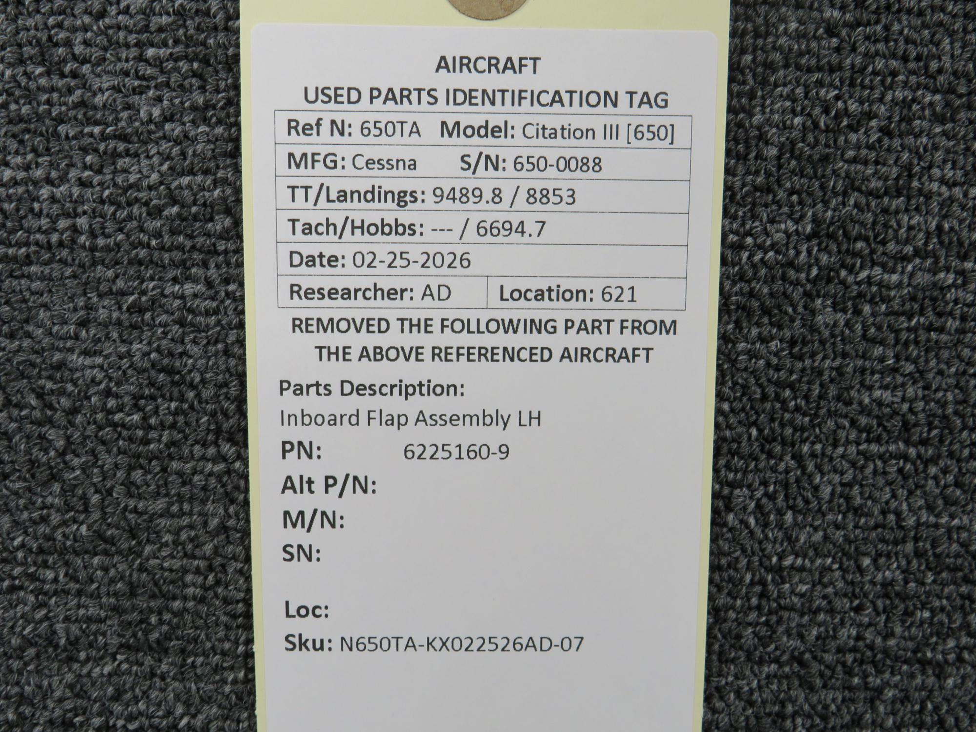Every part is carefully inspected throughout our process and several times before it goes online. Most items are sold as-removed, just as they came off the aircraft. These parts are not functionally tested. What we do provide is clear photos, full traceability when available, pricing that reflects the as-removed condition, and a no-nonsense 90-day return window.