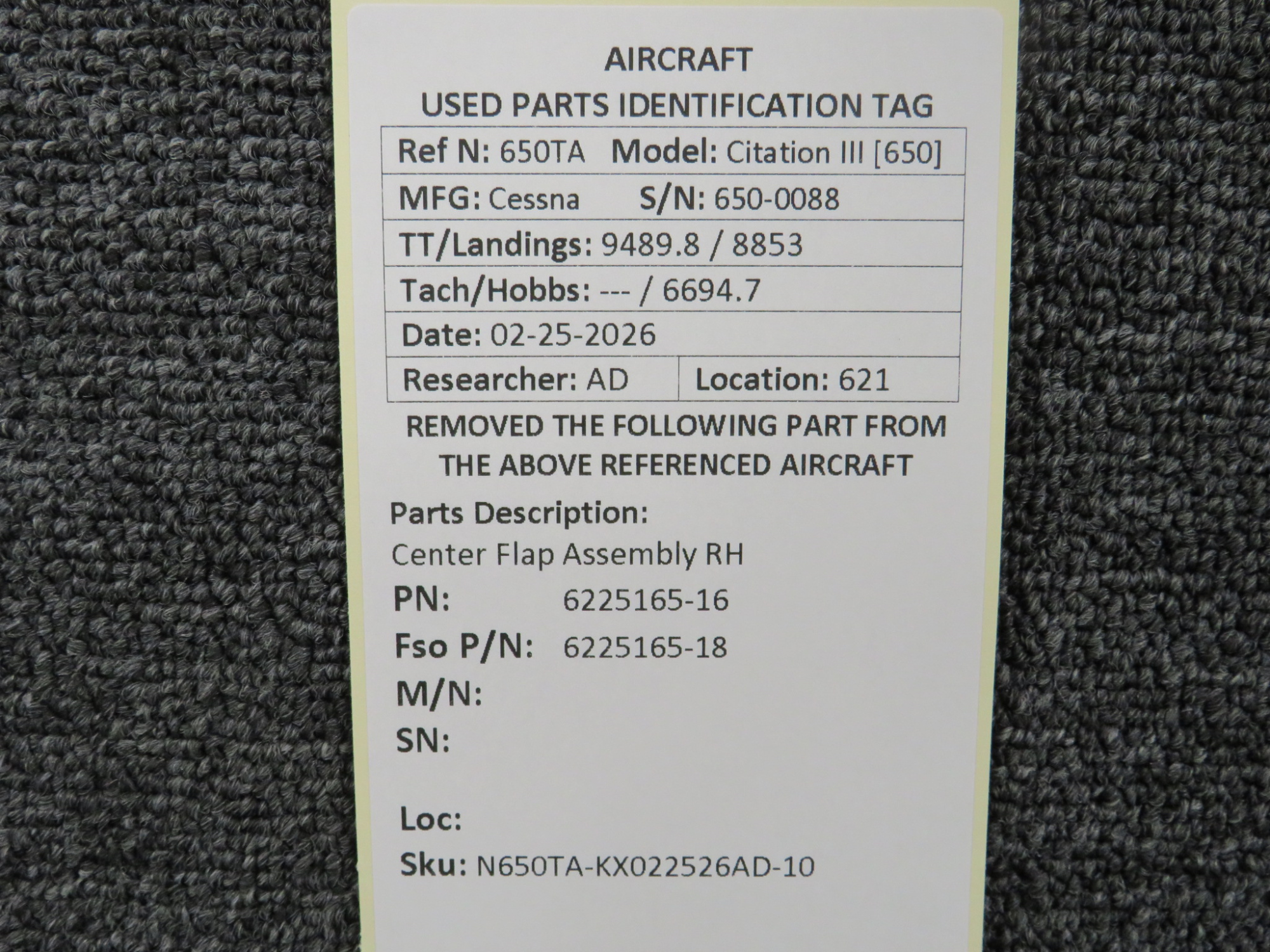 Unless specifically noted, most of our used airplane parts are sold in the condition they were removed, which means you should expect the usual signs of wear and tear.