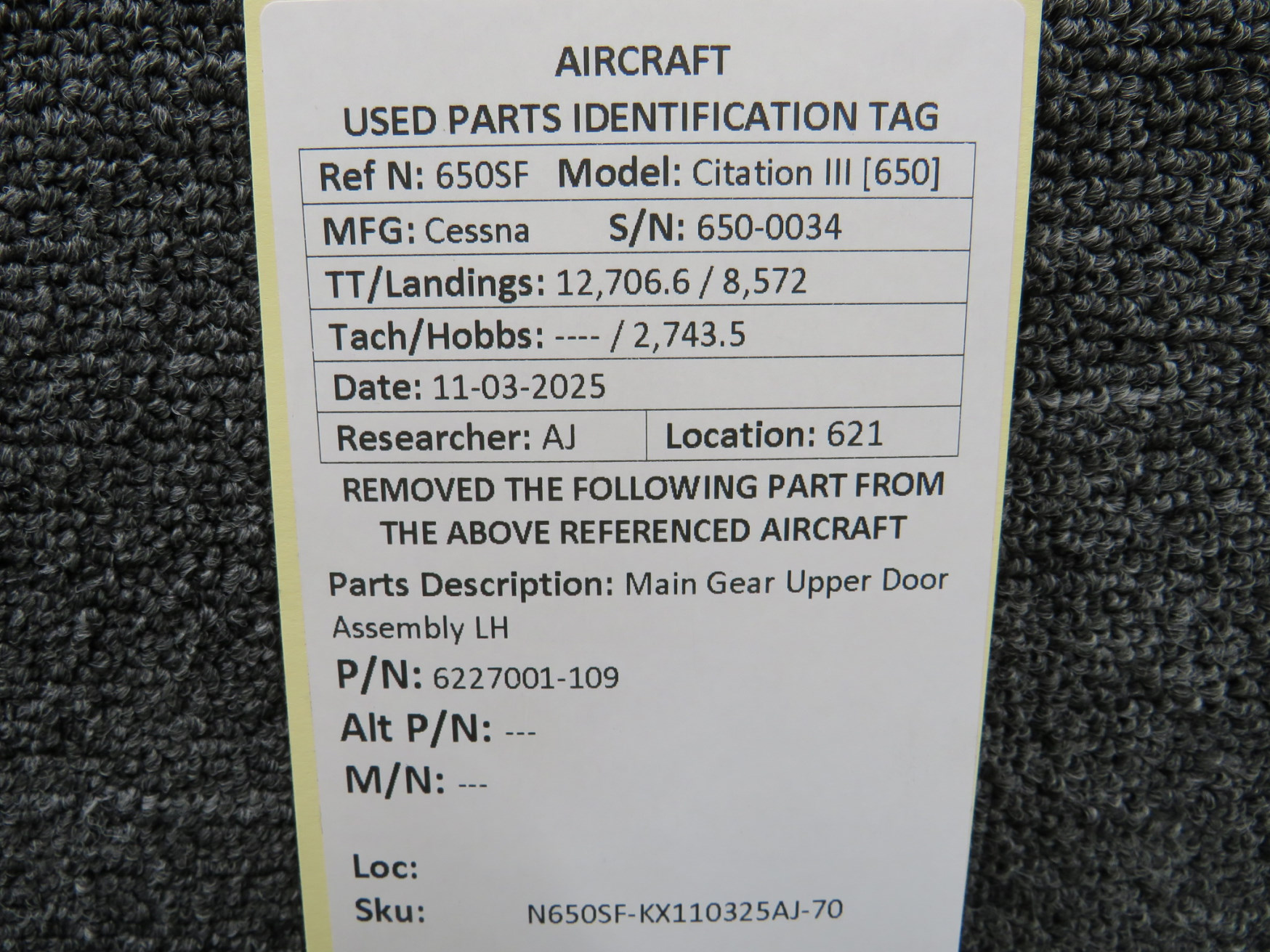 Unless specifically noted, most of our used airplane parts are sold in the condition they were removed, which means you should expect the usual signs of wear and tear.