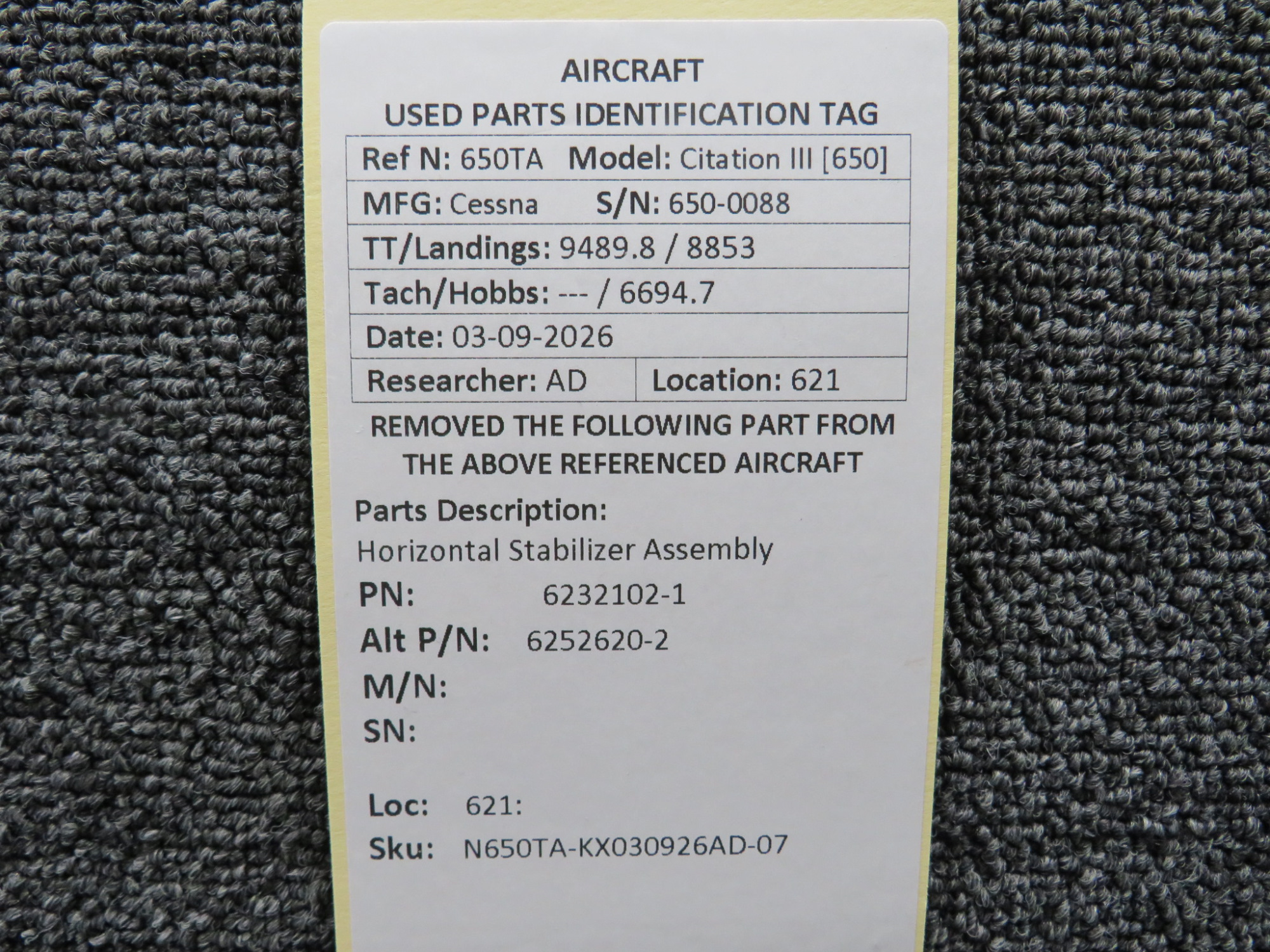 Every part is carefully inspected throughout our process and several times before it goes online. Most items are sold as-removed, just as they came off the aircraft. These parts are not functionally tested. What we do provide is clear photos, full traceability when available, pricing that reflects the as-removed condition, and a no-nonsense 90-day return window.