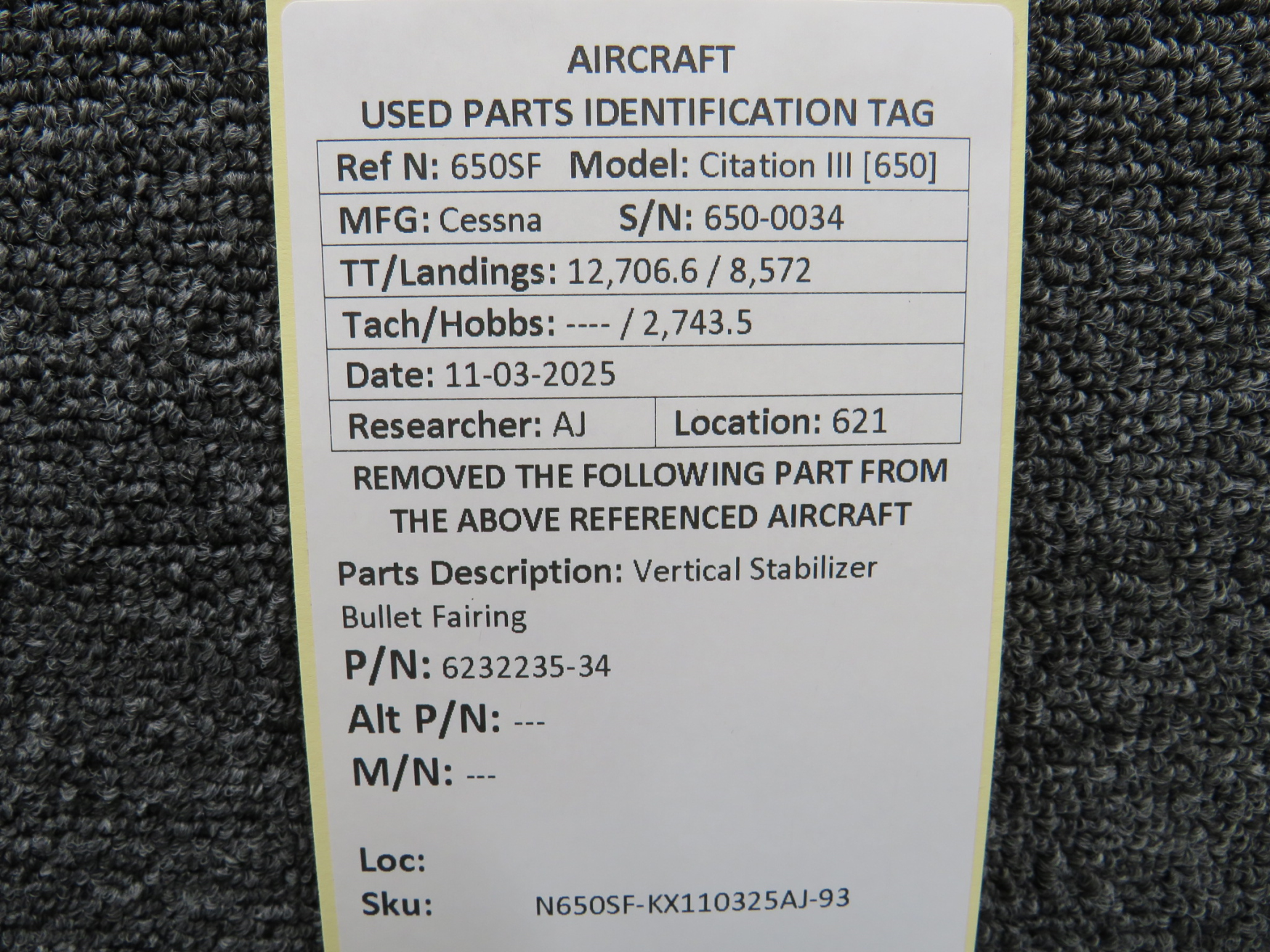 Unless specifically noted, most of our used airplane parts are sold in the condition they were removed, which means you should expect the usual signs of wear and tear.
