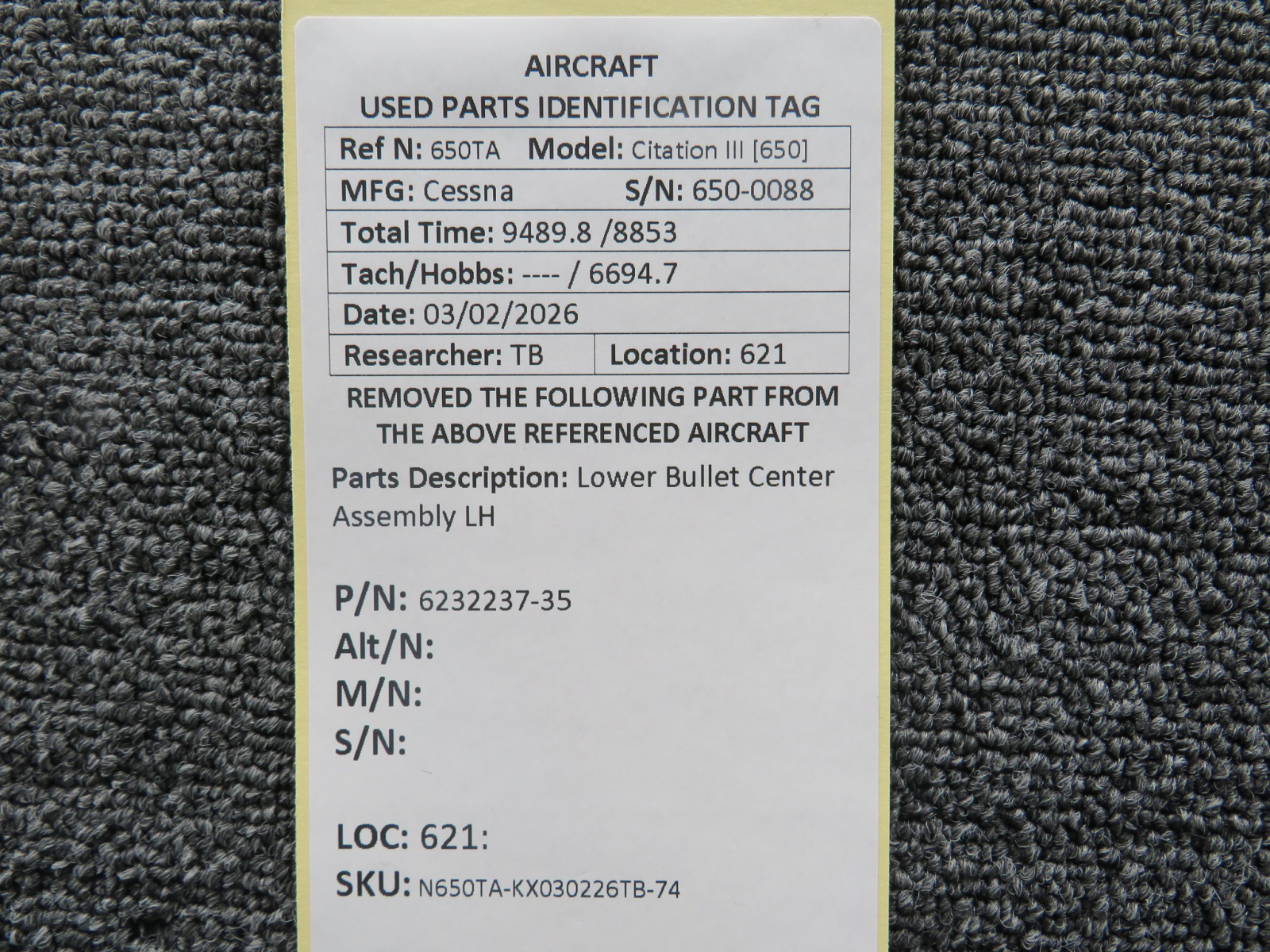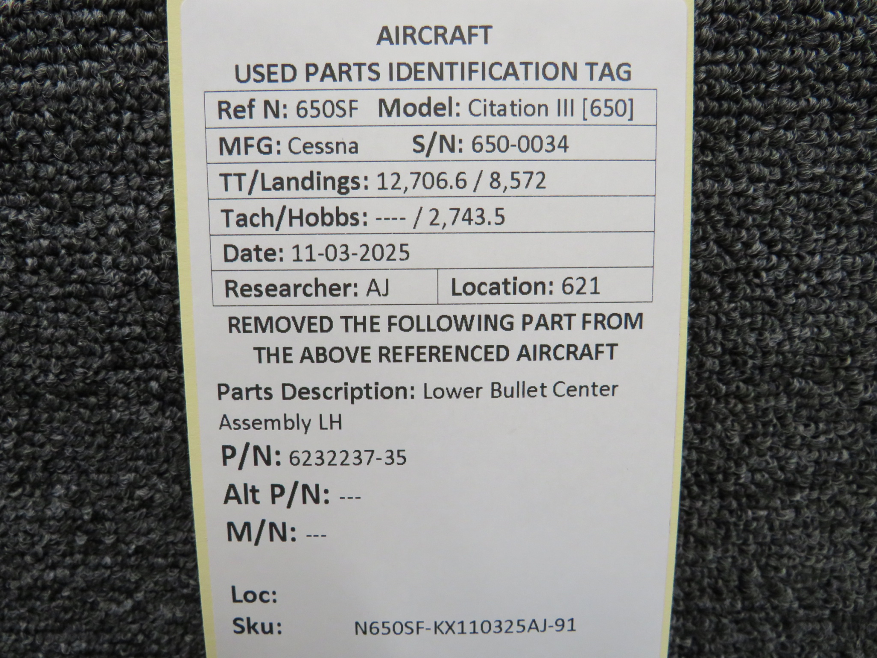Every part is carefully inspected throughout our process and several times before it goes online. Most items are sold as-removed, just as they came off the aircraft. These parts are not functionally tested. What we do provide is clear photos, full traceability when available, pricing that reflects the as-removed condition, and a no-nonsense 90-day return window.