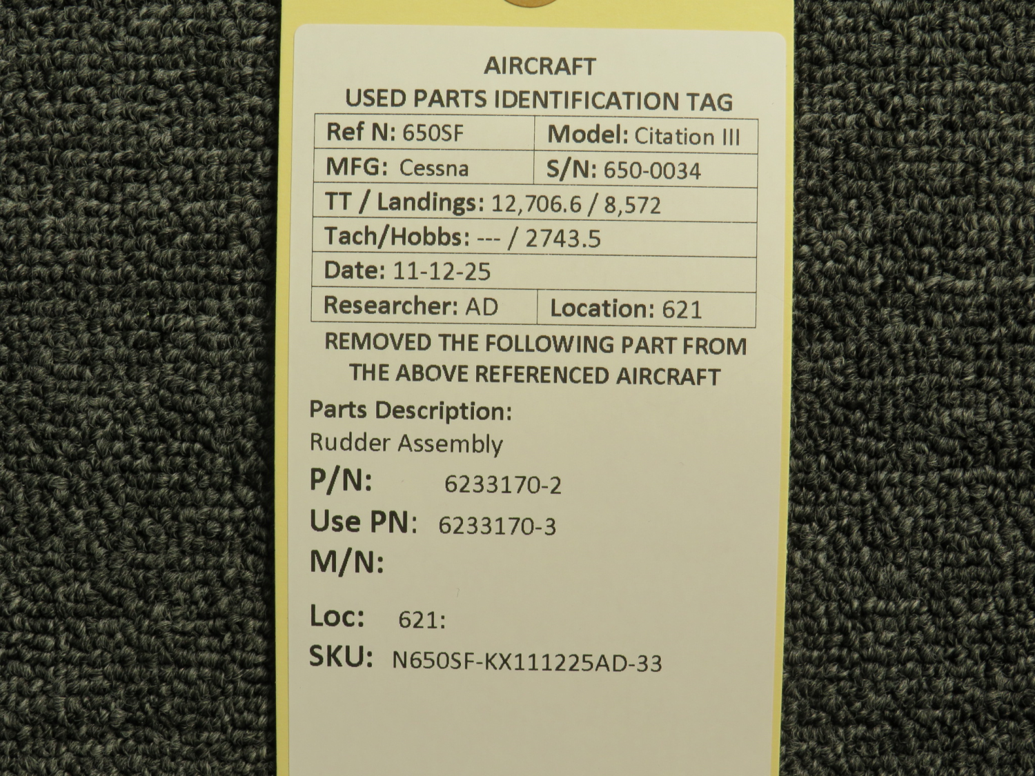 Unless specifically noted, most of our used airplane parts are sold in the condition they were removed, which means you should expect the usual signs of wear and tear.