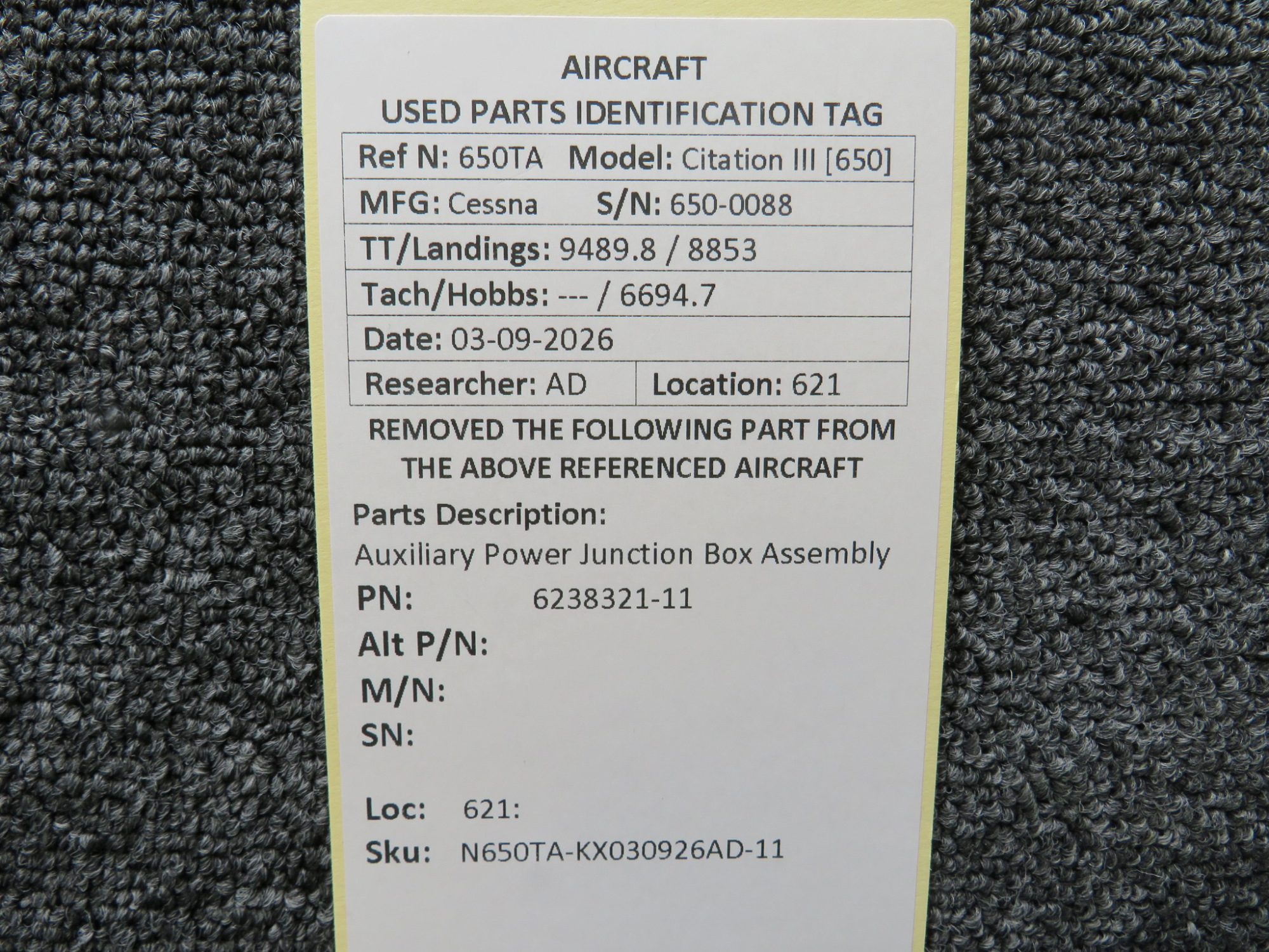 Every part is carefully inspected throughout our process and several times before it goes online. Most items are sold as-removed, just as they came off the aircraft. These parts are not functionally tested. What we do provide is clear photos, full traceability when available, pricing that reflects the as-removed condition, and a no-nonsense 90-day return window.