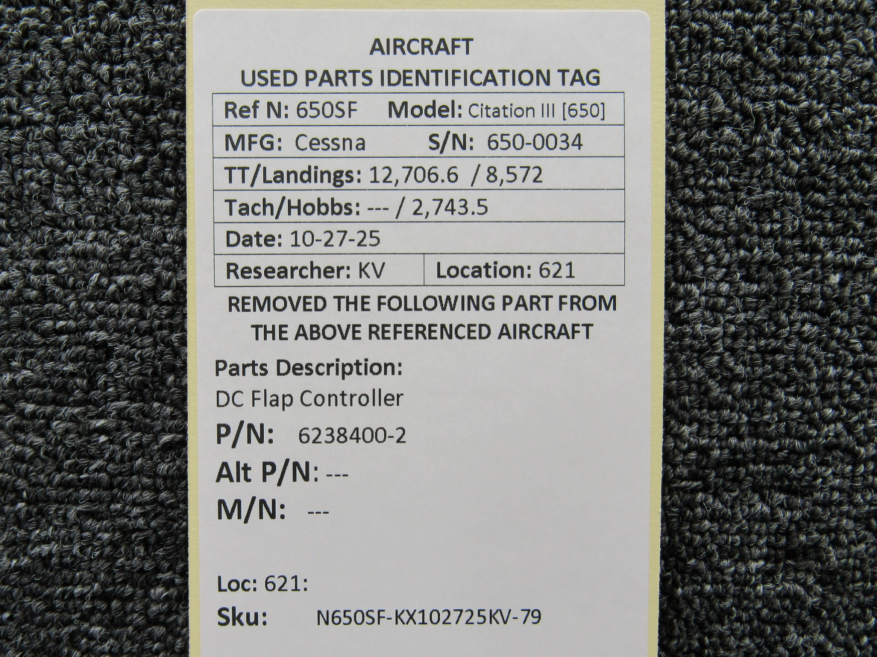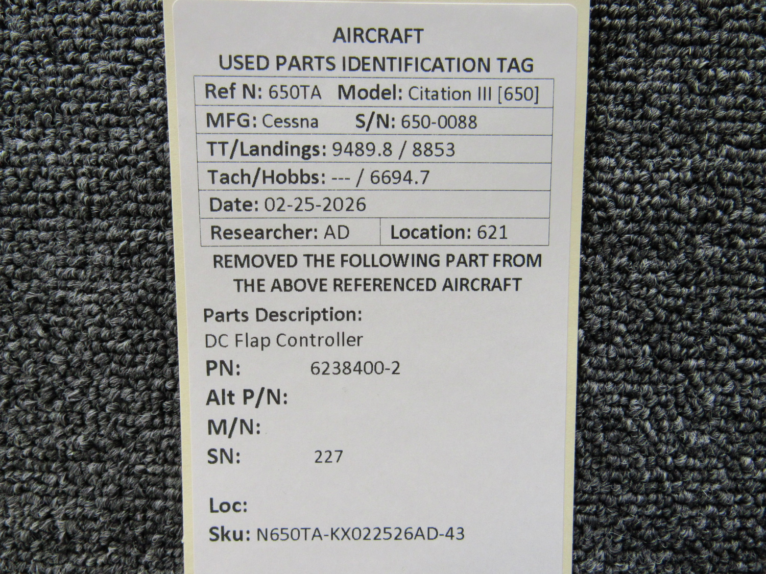 Every part is carefully inspected throughout our process and several times before it goes online. Most items are sold as-removed, just as they came off the aircraft. These parts are not functionally tested. What we do provide is clear photos, full traceability when available, pricing that reflects the as-removed condition, and a no-nonsense 90-day return window.