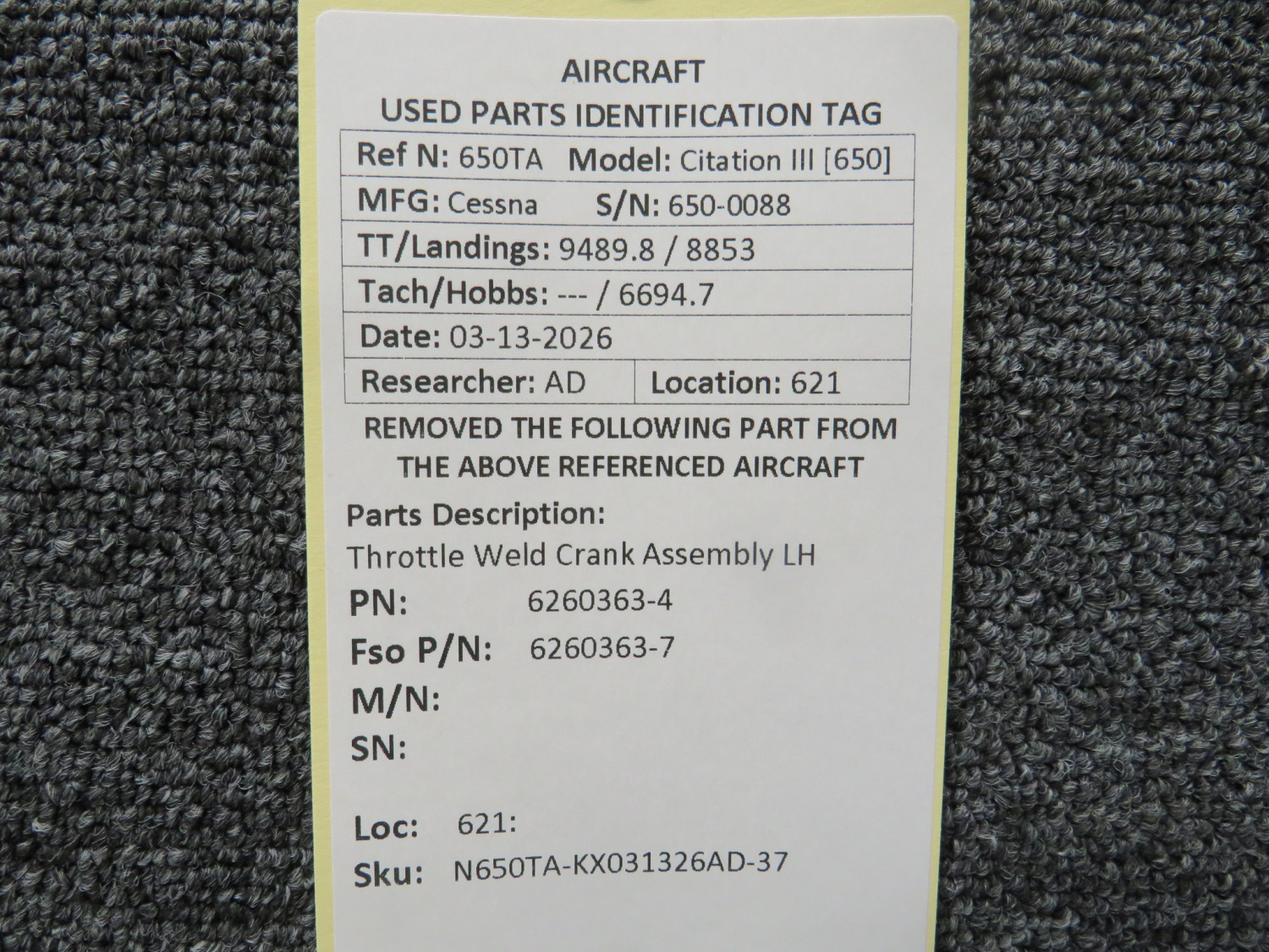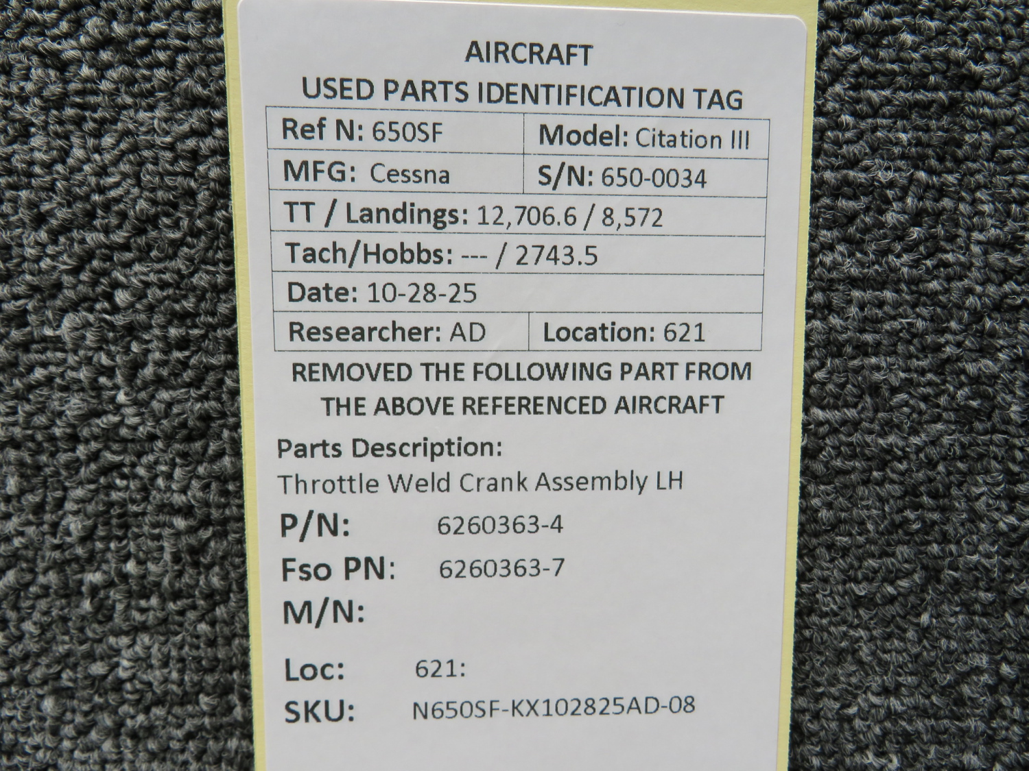 Every part is carefully inspected throughout our process and several times before it goes online. Most items are sold as-removed, just as they came off the aircraft. These parts are not functionally tested. What we do provide is clear photos, full traceability when available, pricing that reflects the as-removed condition, and a no-nonsense 90-day return window.