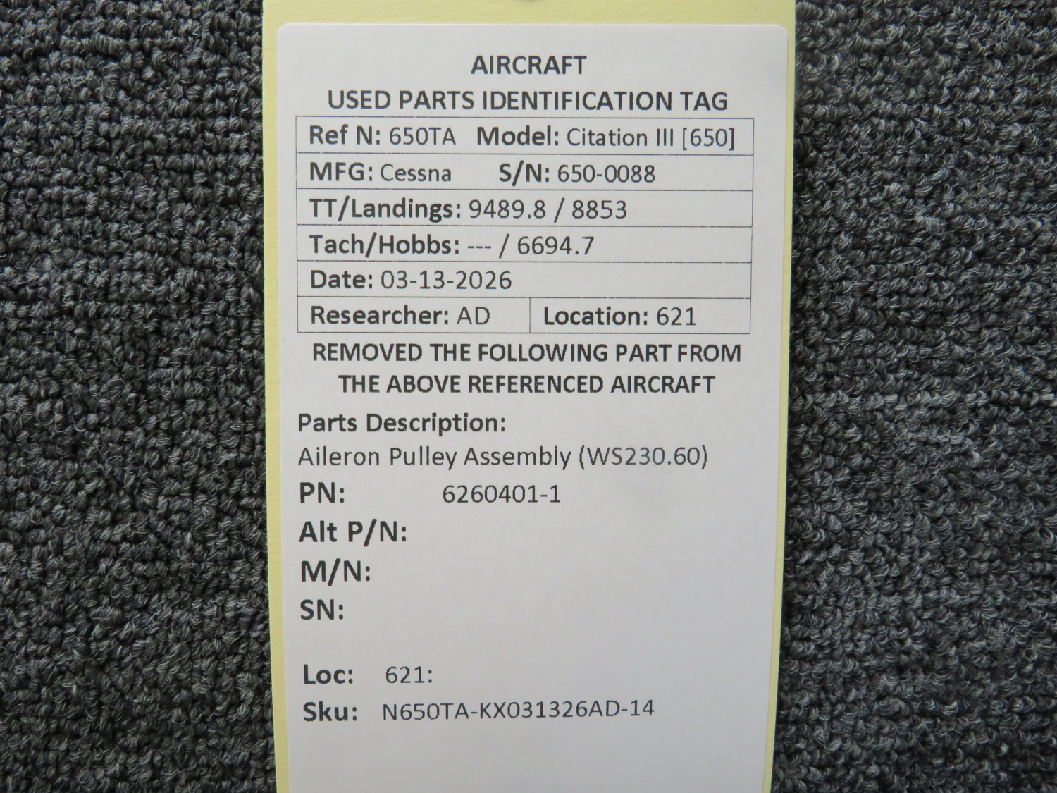 Every part is carefully inspected throughout our process and several times before it goes online. Most items are sold as-removed, just as they came off the aircraft. These parts are not functionally tested. What we do provide is clear photos, full traceability when available, pricing that reflects the as-removed condition, and a no-nonsense 90-day return window.