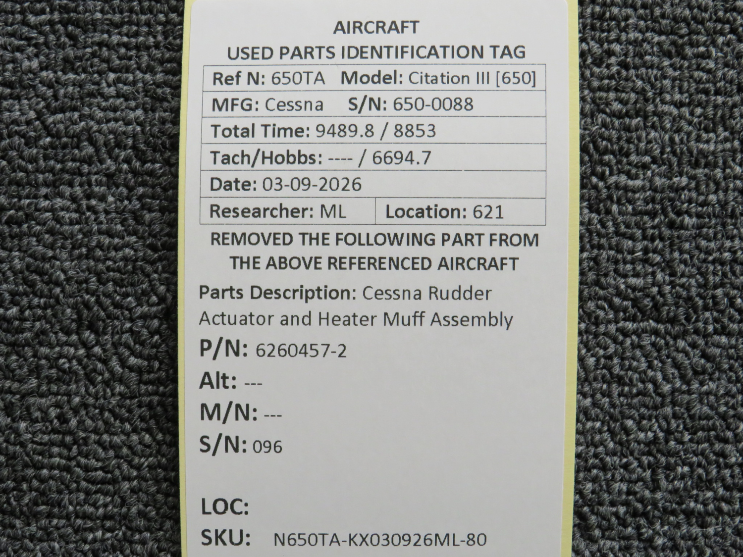 Every part is carefully inspected throughout our process and several times before it goes online. Most items are sold as-removed, just as they came off the aircraft. These parts are not functionally tested. What we do provide is clear photos, full traceability when available, pricing that reflects the as-removed condition, and a no-nonsense 90-day return window.