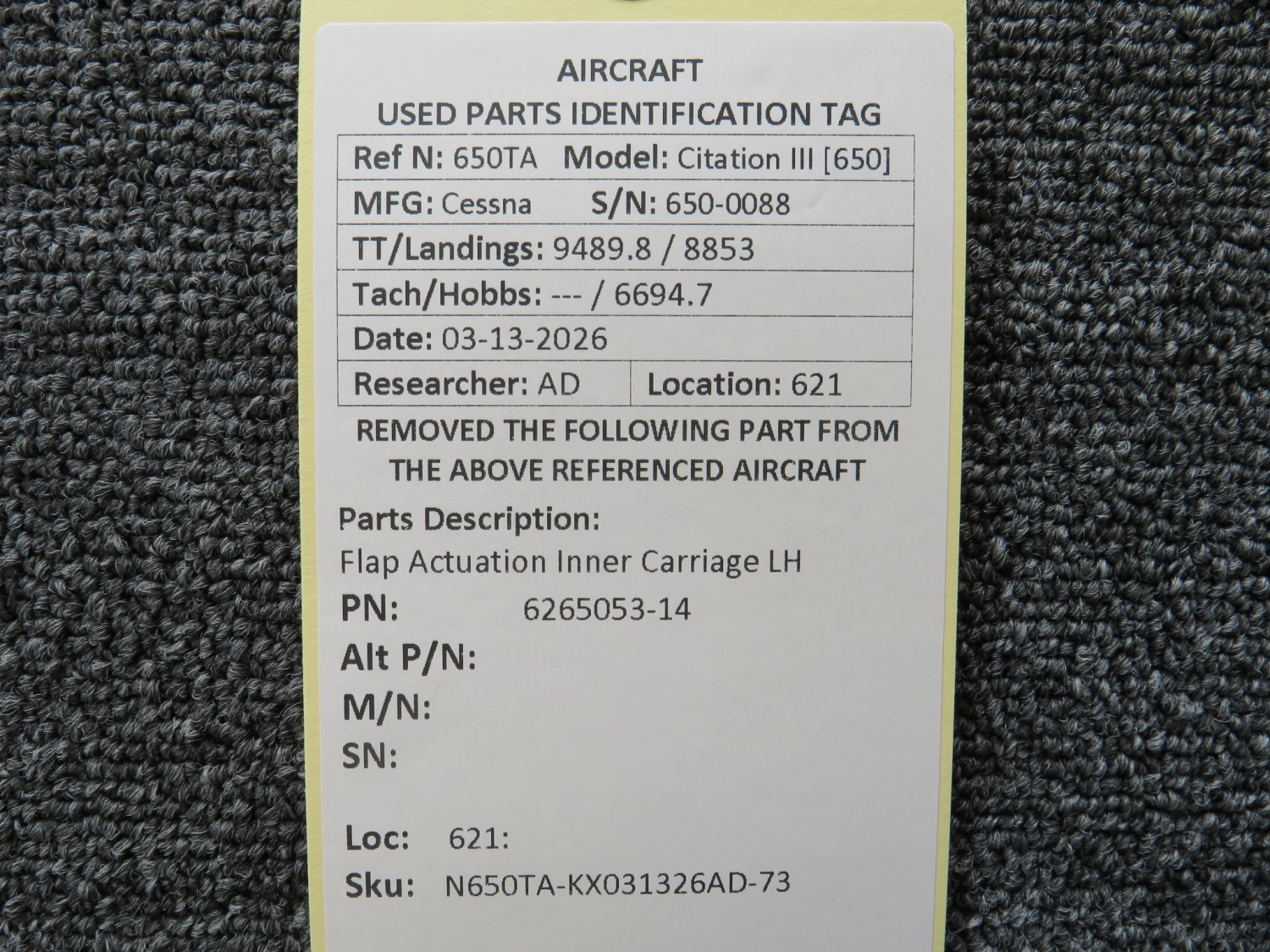 Every part is carefully inspected throughout our process and several times before it goes online. Most items are sold as-removed, just as they came off the aircraft. These parts are not functionally tested. What we do provide is clear photos, full traceability when available, pricing that reflects the as-removed condition, and a no-nonsense 90-day return window.