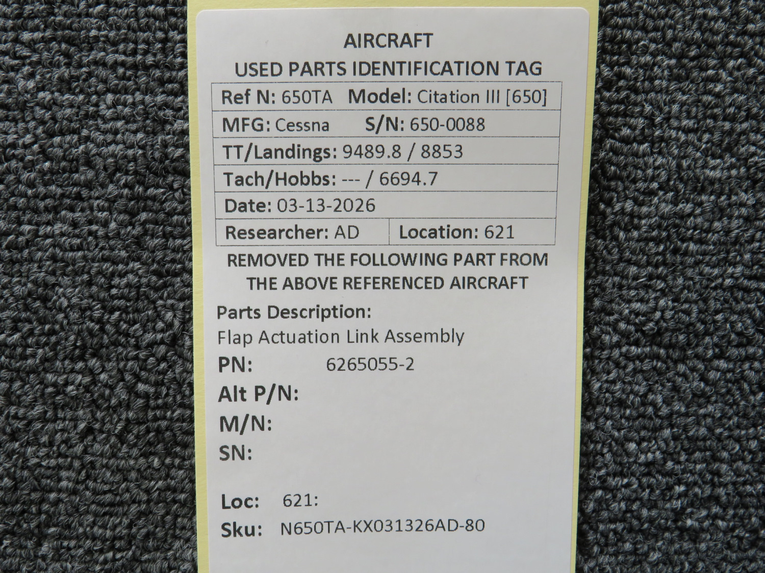 Every part is carefully inspected throughout our process and several times before it goes online. Most items are sold as-removed, just as they came off the aircraft. These parts are not functionally tested. What we do provide is clear photos, full traceability when available, pricing that reflects the as-removed condition, and a no-nonsense 90-day return window.