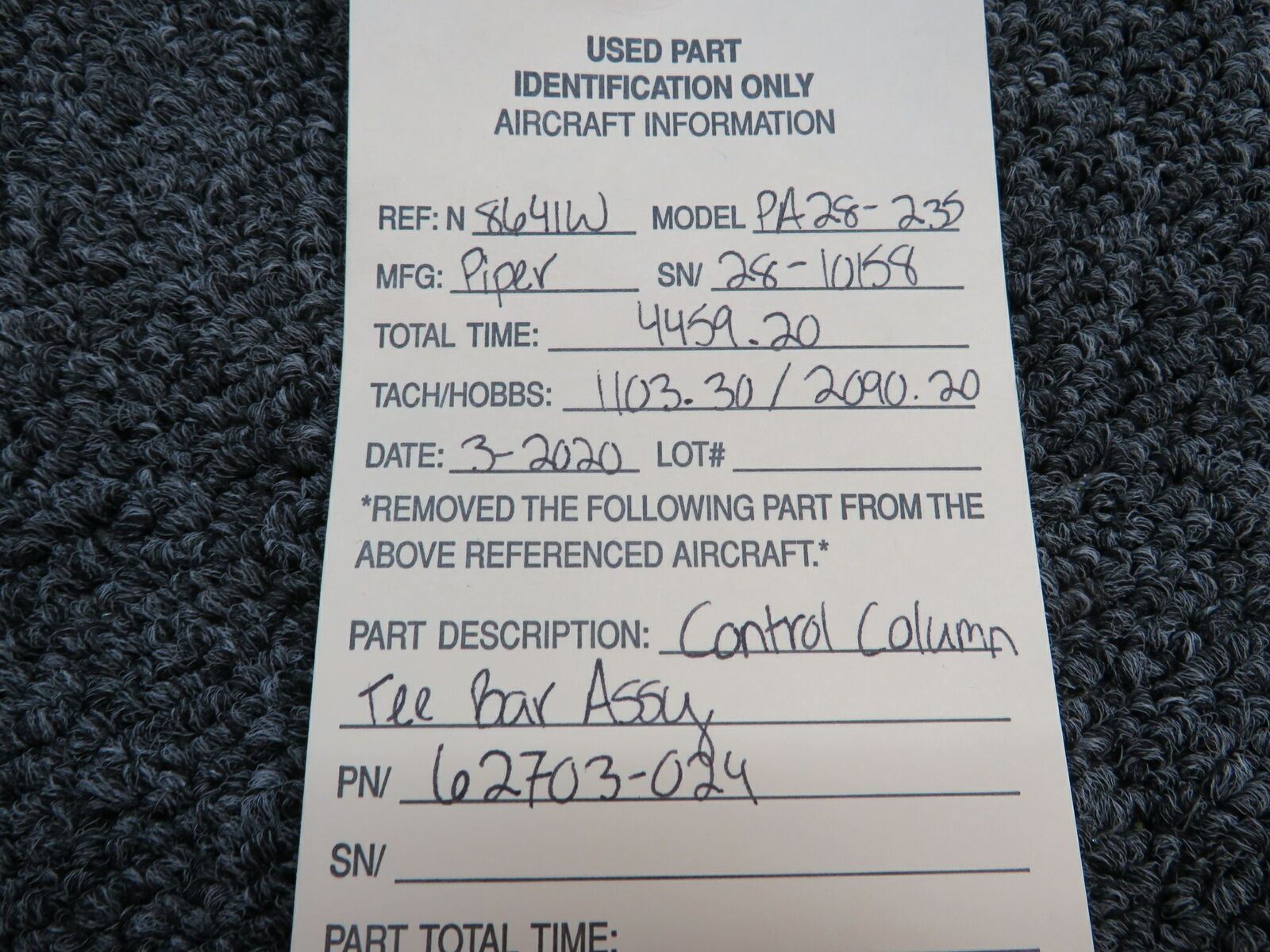 62703-024 Piper PA28-235 Control Column Tee Bar Assembly