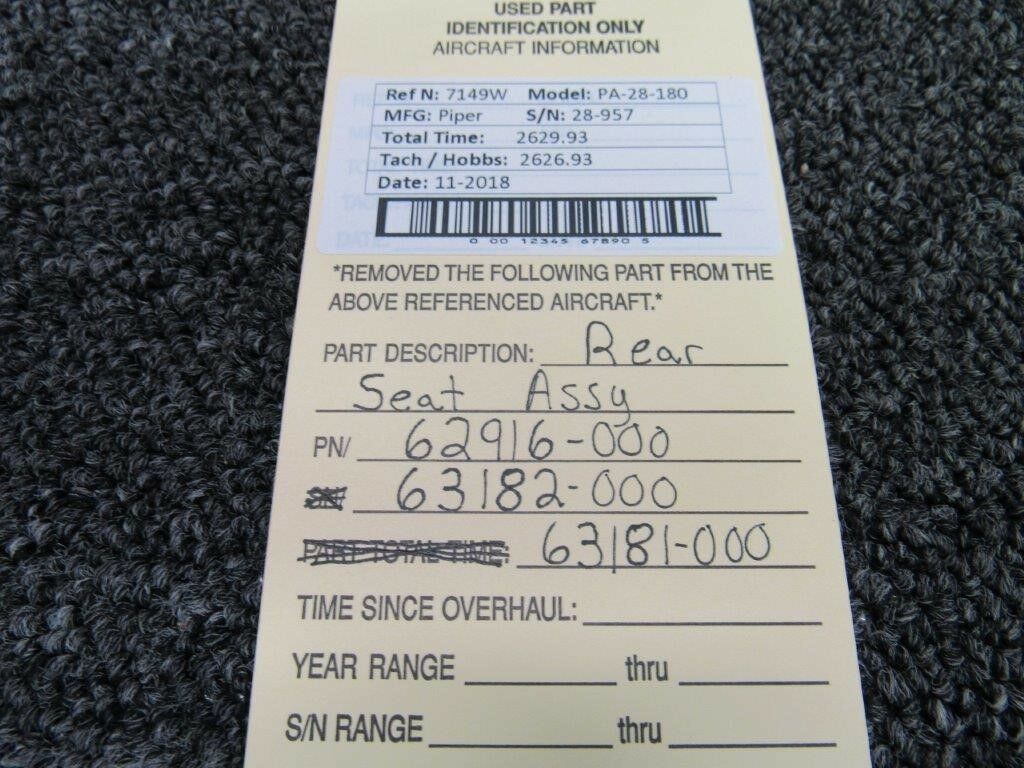 62916-000 / 63182-000 / 63181-000 Piper PA-28-180 Rear Seat Assy