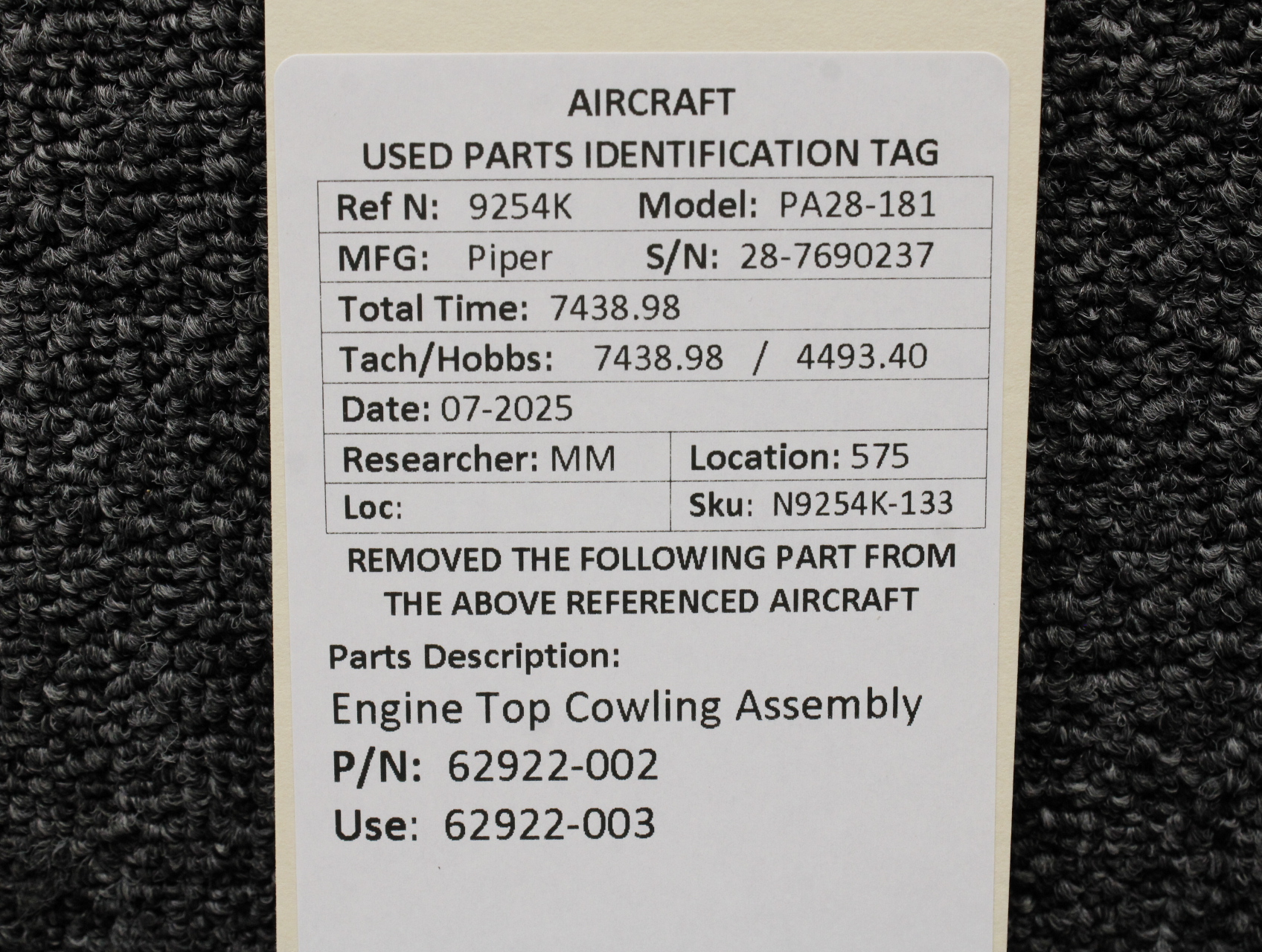 Unless specifically noted, most of our used airplane parts are sold in the condition they were removed, which means you should expect the usual signs of wear and tear.