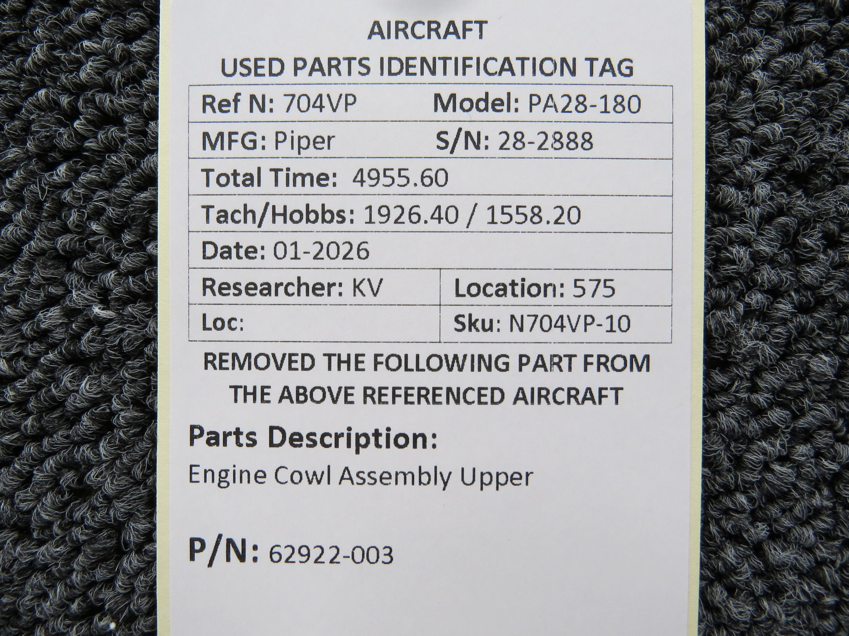 Every part is carefully inspected throughout our process and several times before it goes online. Most items are sold as-removed, just as they came off the aircraft. These parts are not functionally tested. What we do provide is clear photos, full traceability when available, pricing that reflects the as-removed condition, and a no-nonsense 90-day return window.