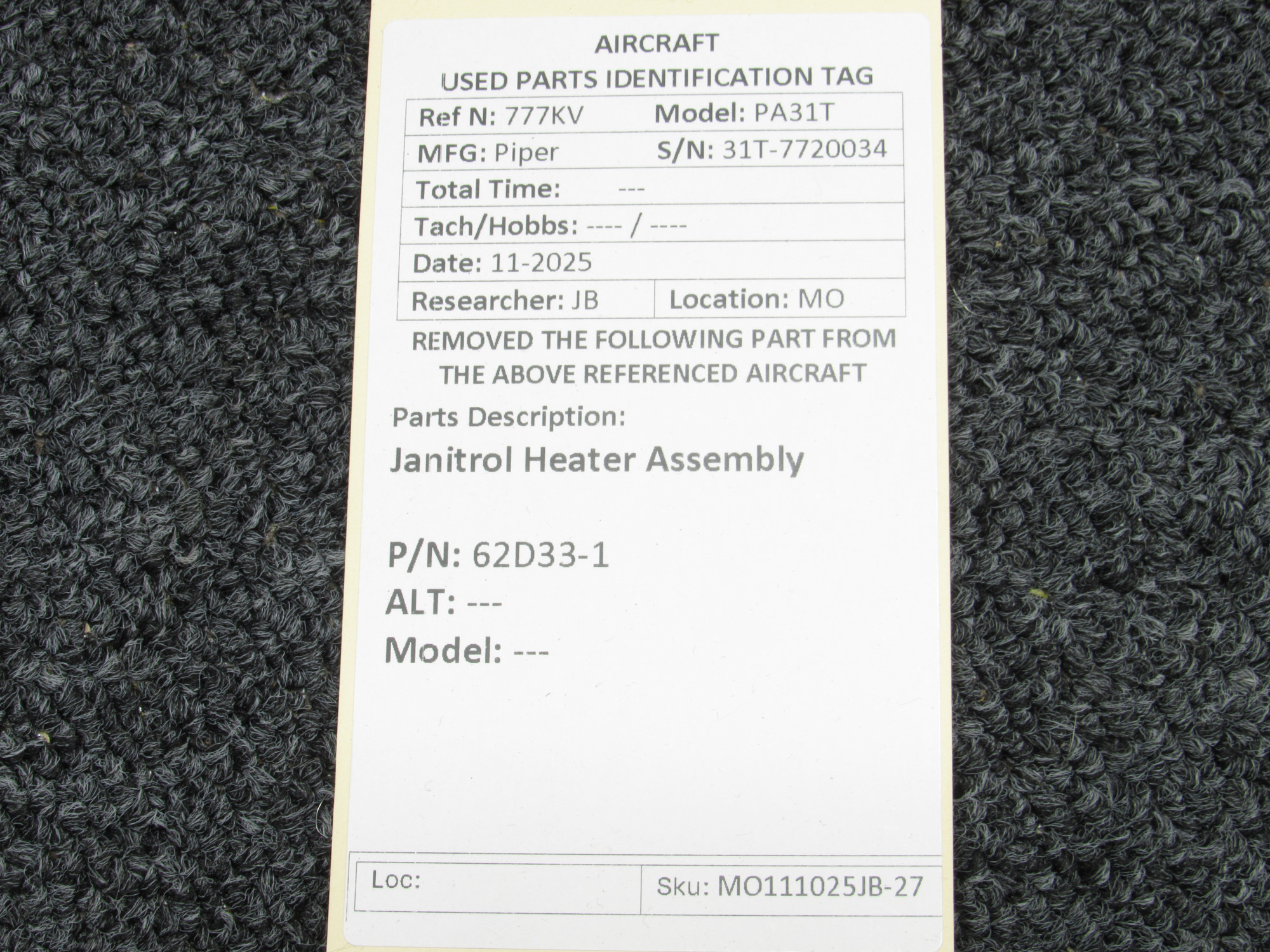 Unless specifically noted, most of our used airplane parts are sold in the condition they were removed, which means you should expect the usual signs of wear and tear.