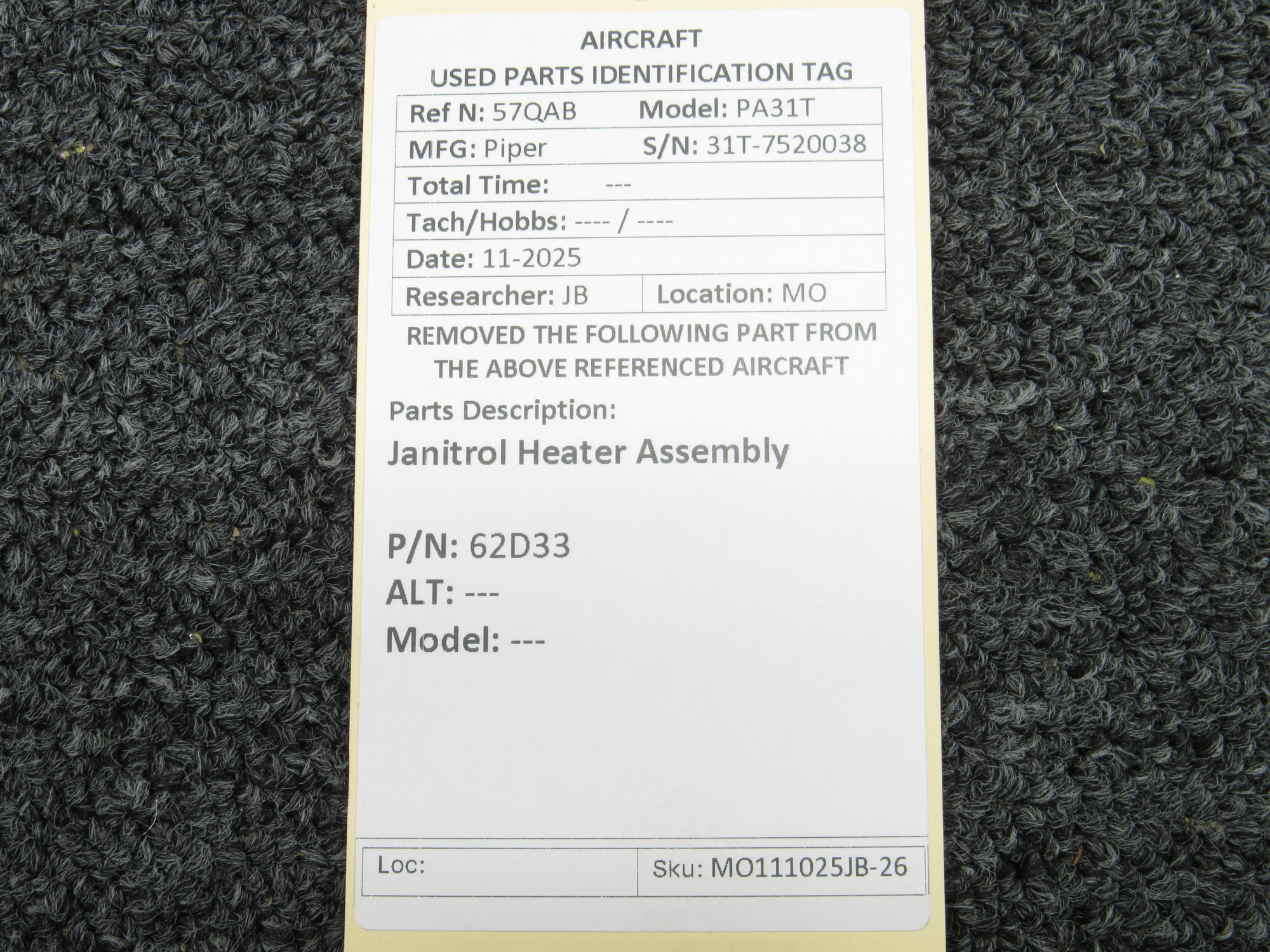 Unless specifically noted, most of our used airplane parts are sold in the condition they were removed, which means you should expect the usual signs of wear and tear.
