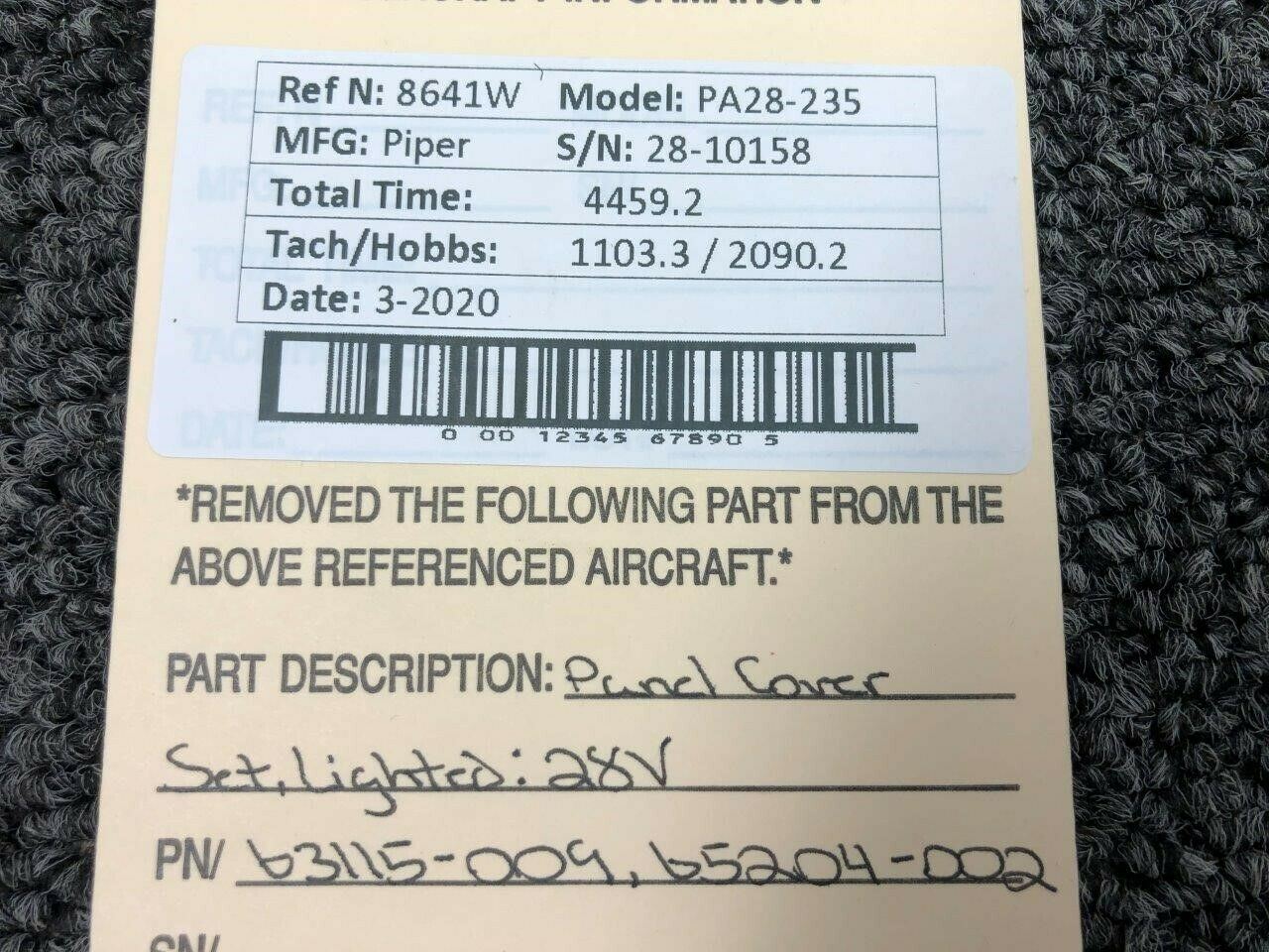 63115-009 / 65204-002 Piper PA28-235 Panel Cover Set (Lighted: 28V)