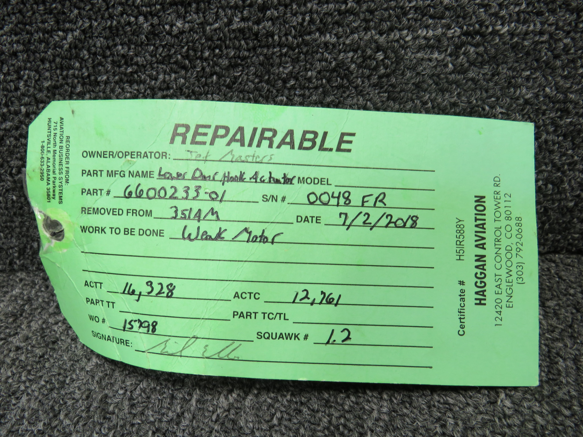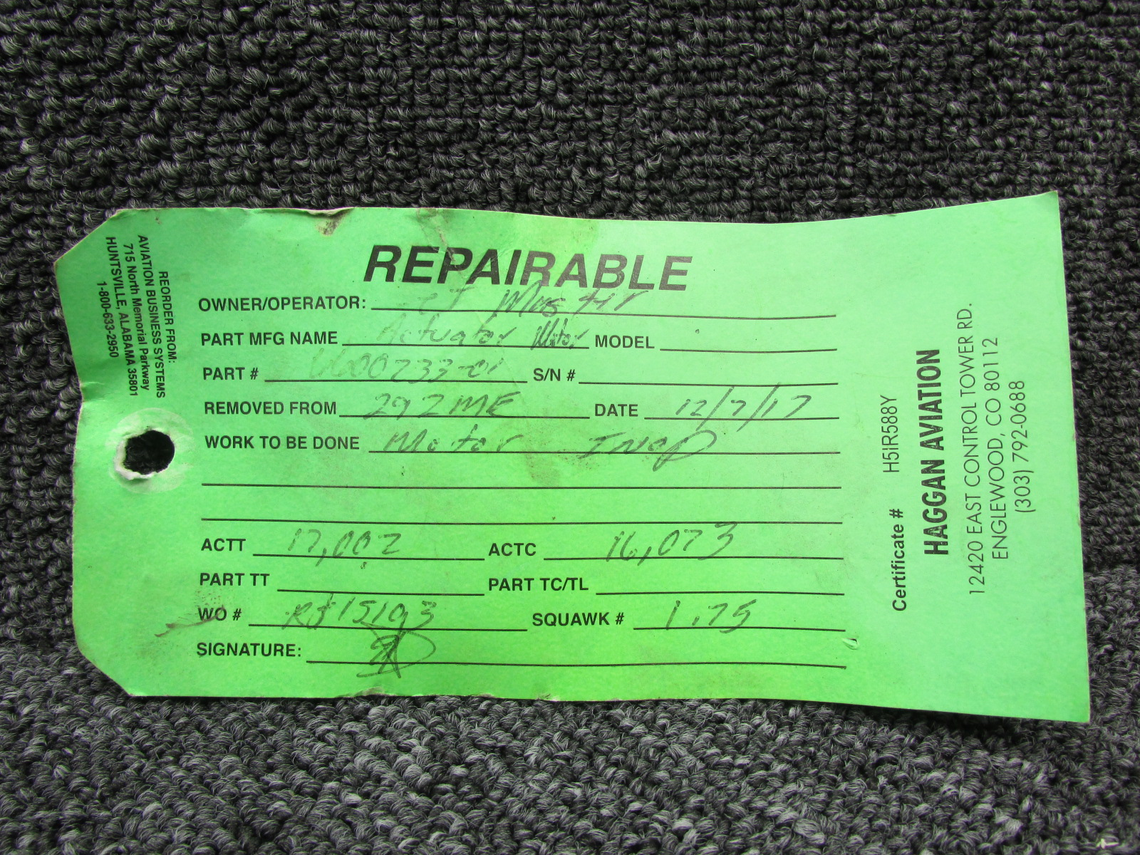 - Includes green repair tag