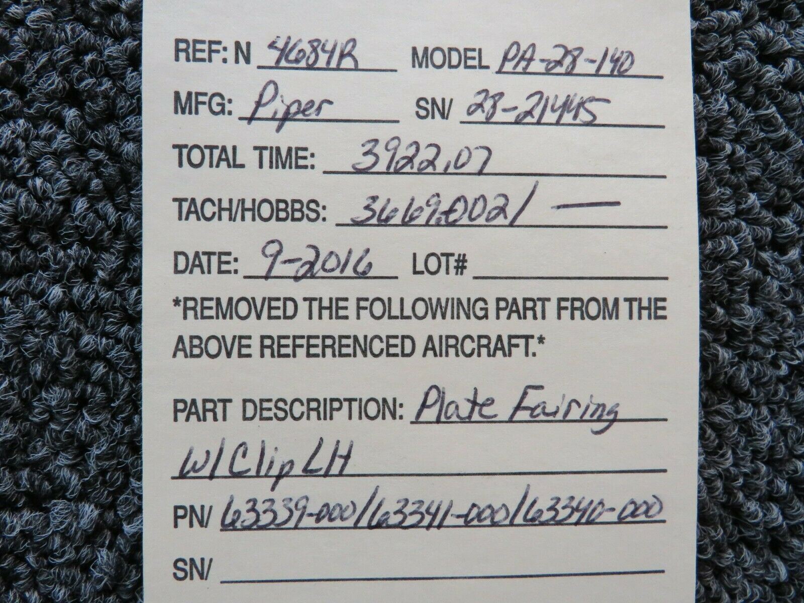 63339-000 / 63341-000 / 63340-000 Piper PA-28-140 Plate Fairing W/ Clip LH
