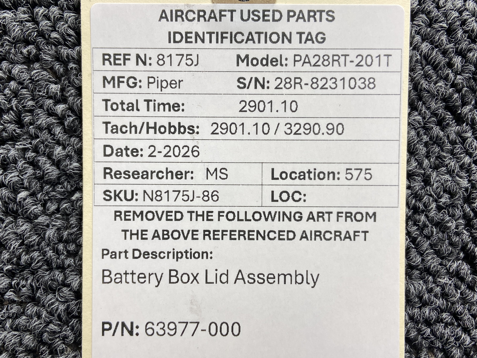 Every part is carefully inspected throughout our process and several times before it goes online. Most items are sold as-removed, just as they came off the aircraft. These parts are not functionally tested. What we do provide is clear photos, full traceability when available, pricing that reflects the as-removed condition, and a no-nonsense 90-day return window.