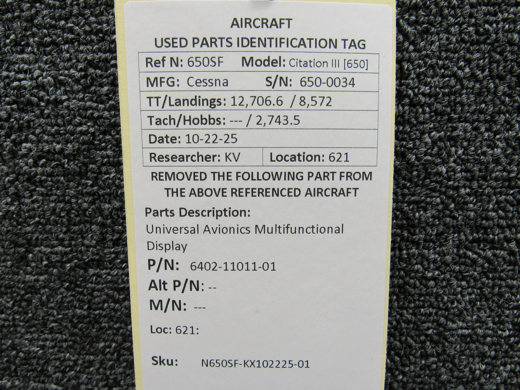 Unless specifically noted, most of our used airplane parts are sold in the condition they were removed, which means you should expect the usual signs of wear and tear.