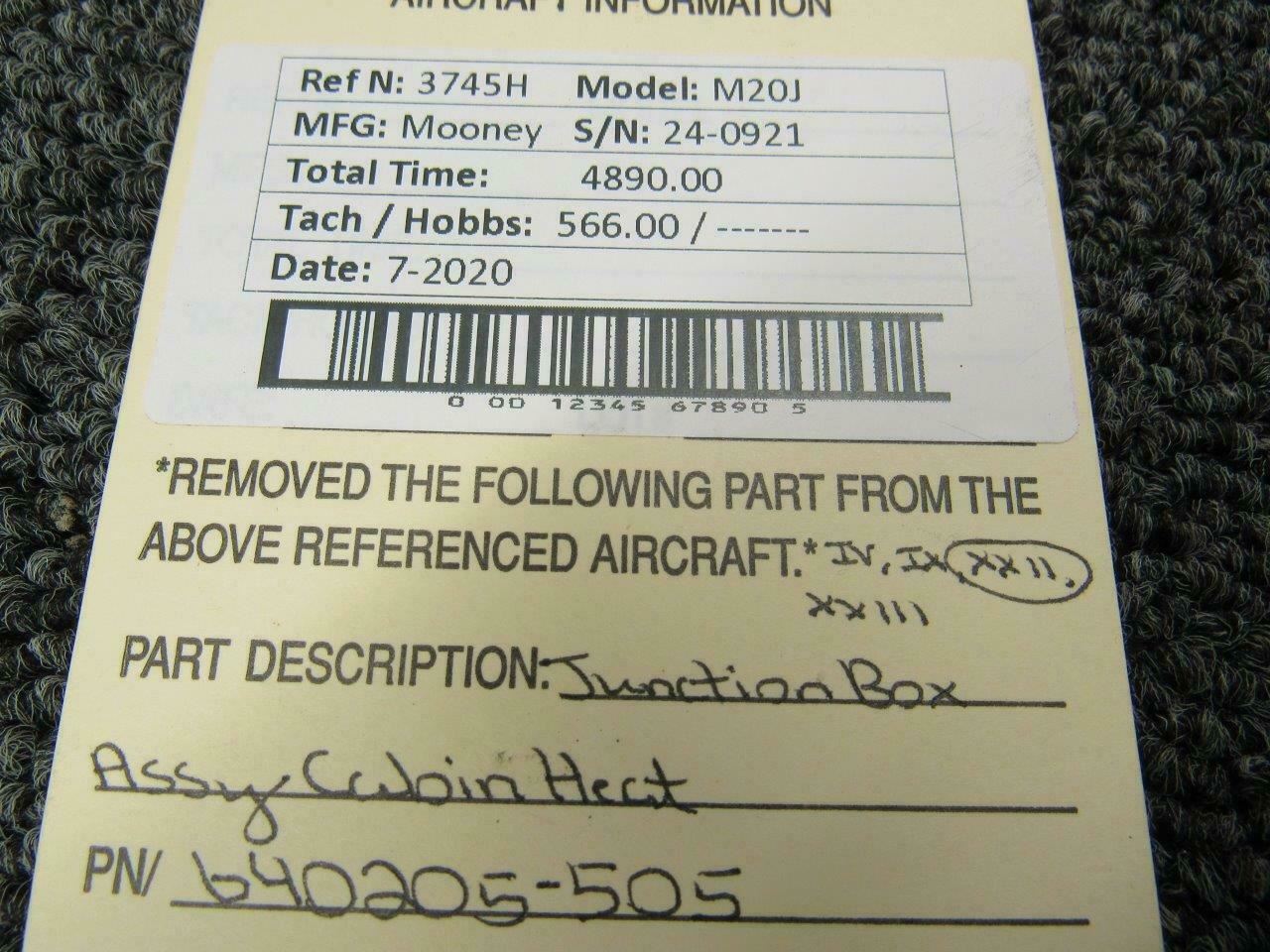 640205-505 Mooney M20J Junction Box Assy Cabin Heat