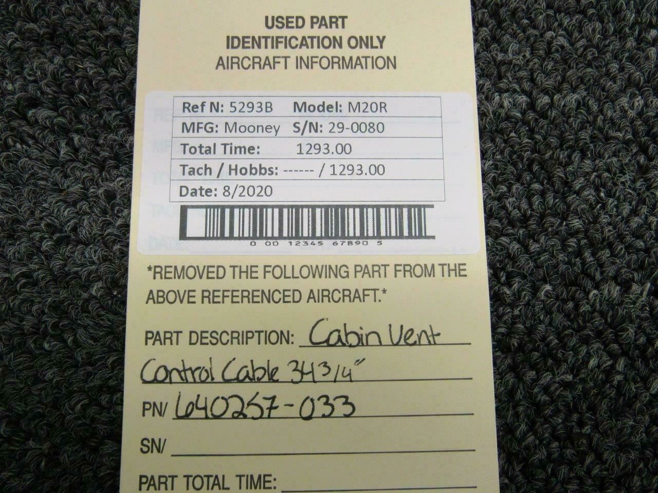 640257-033 Mooney M20R Cabin Vent Control Cable Assy (34 3/4")
