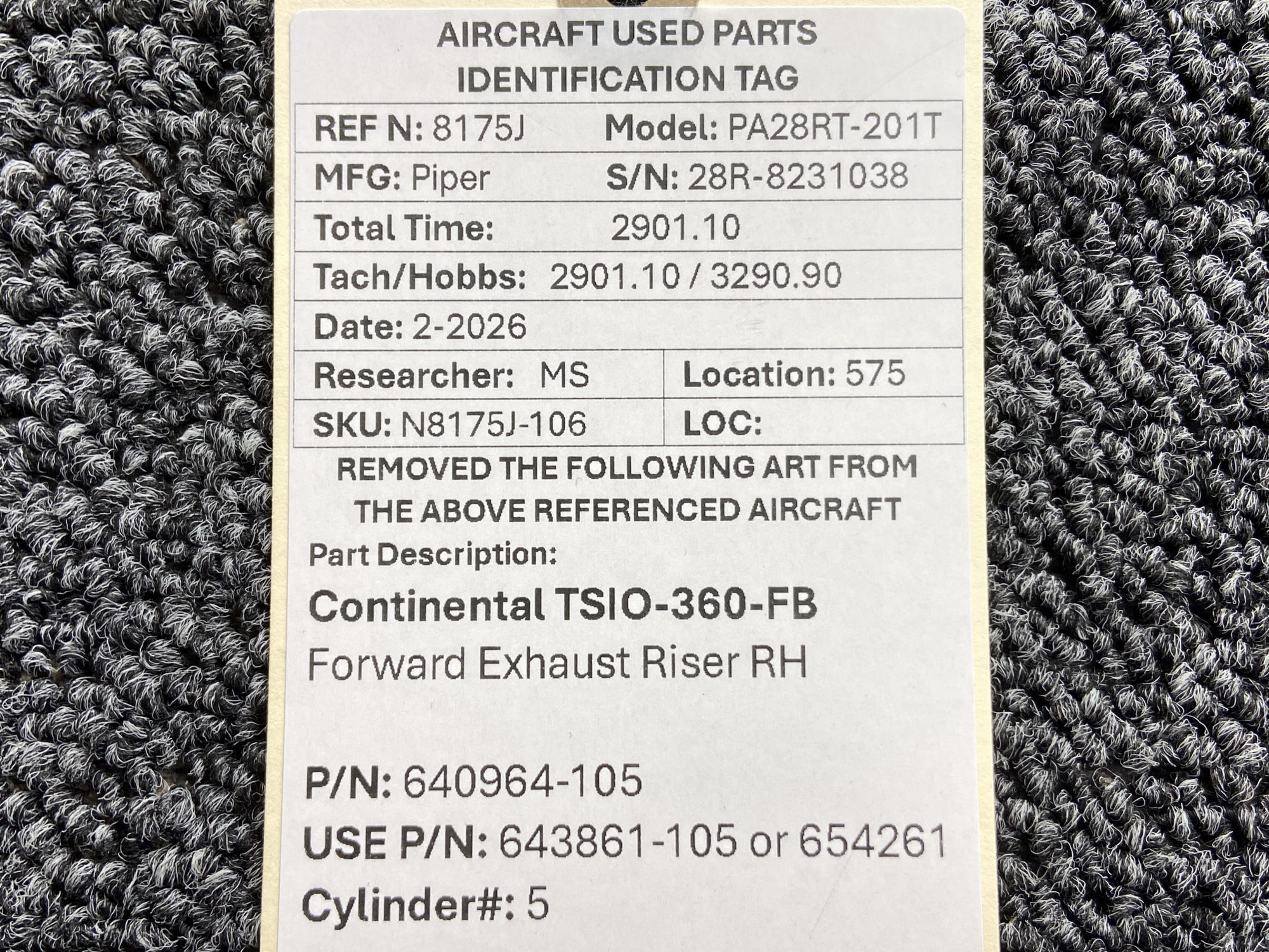 - Removed From Engine: Continental TSIO-360-FB