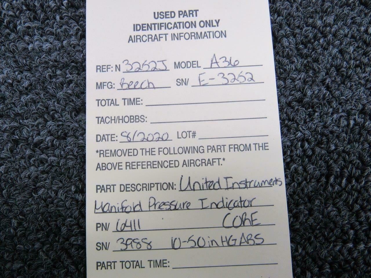 6411 Beech A36 United Instruments Manifold Pressure Indicator CORE (Volts: 28)