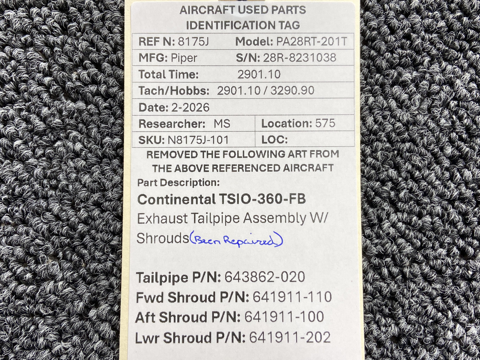 - Tailpipe Part Number: 643862-020