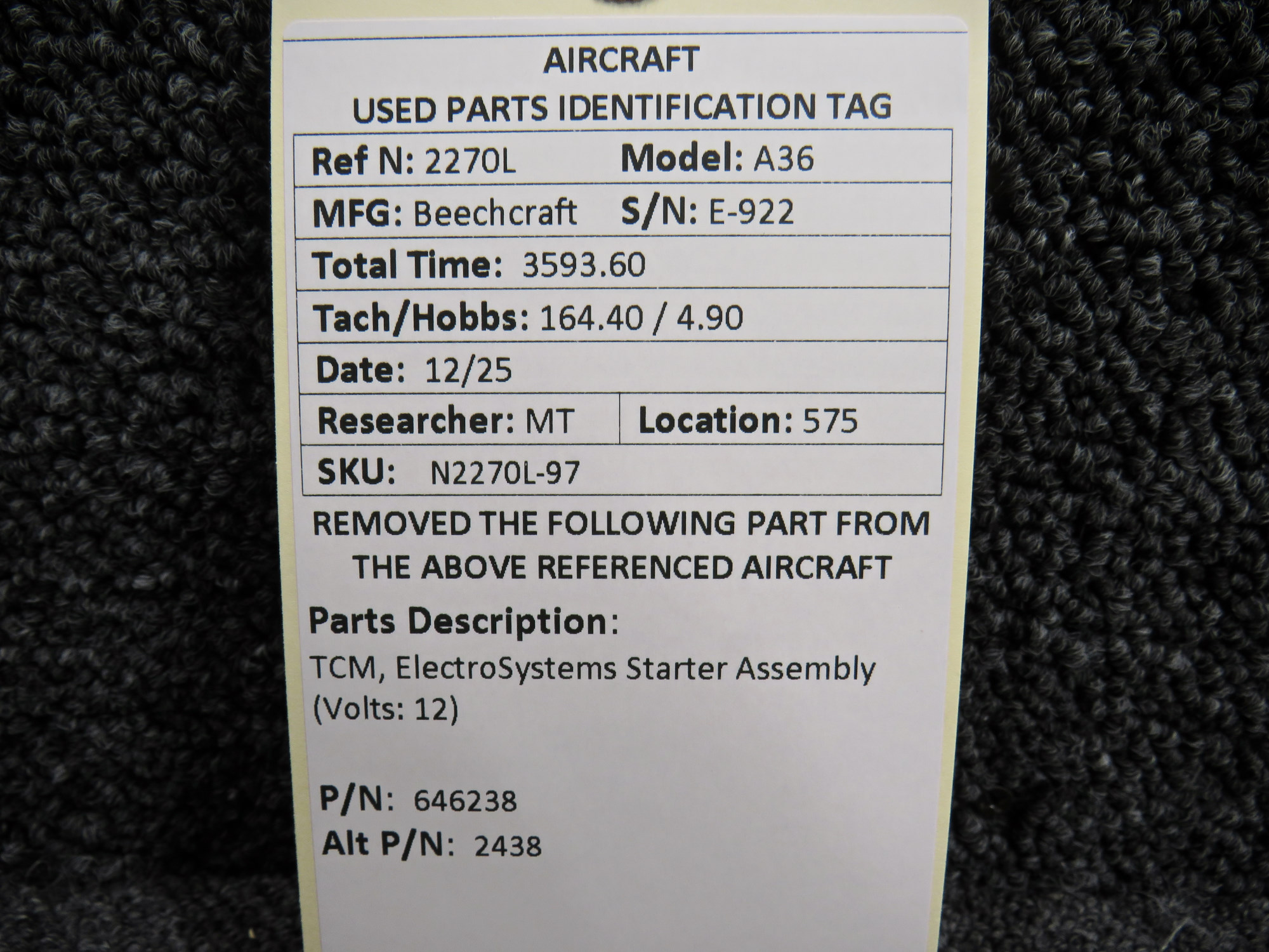 Unless specifically noted, most of our used airplane parts are sold in the condition they were removed, which means you should expect the usual signs of wear and tear.
