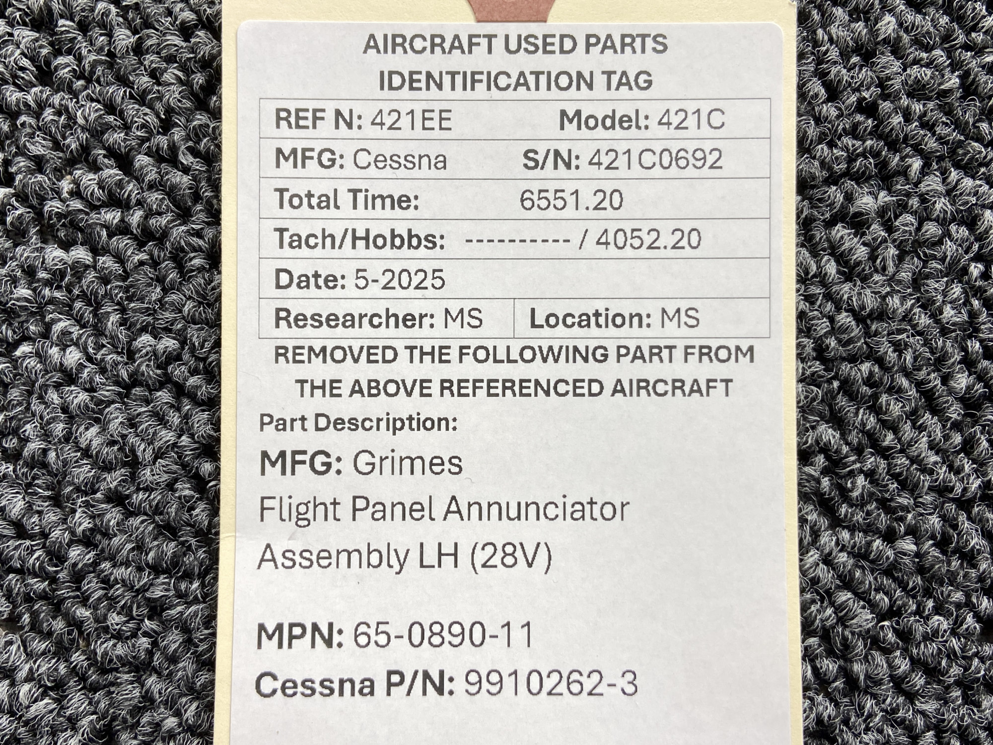 Unless specifically noted, most of our used airplane parts are sold in the condition they were removed, which means you should expect the usual signs of wear and tear.
