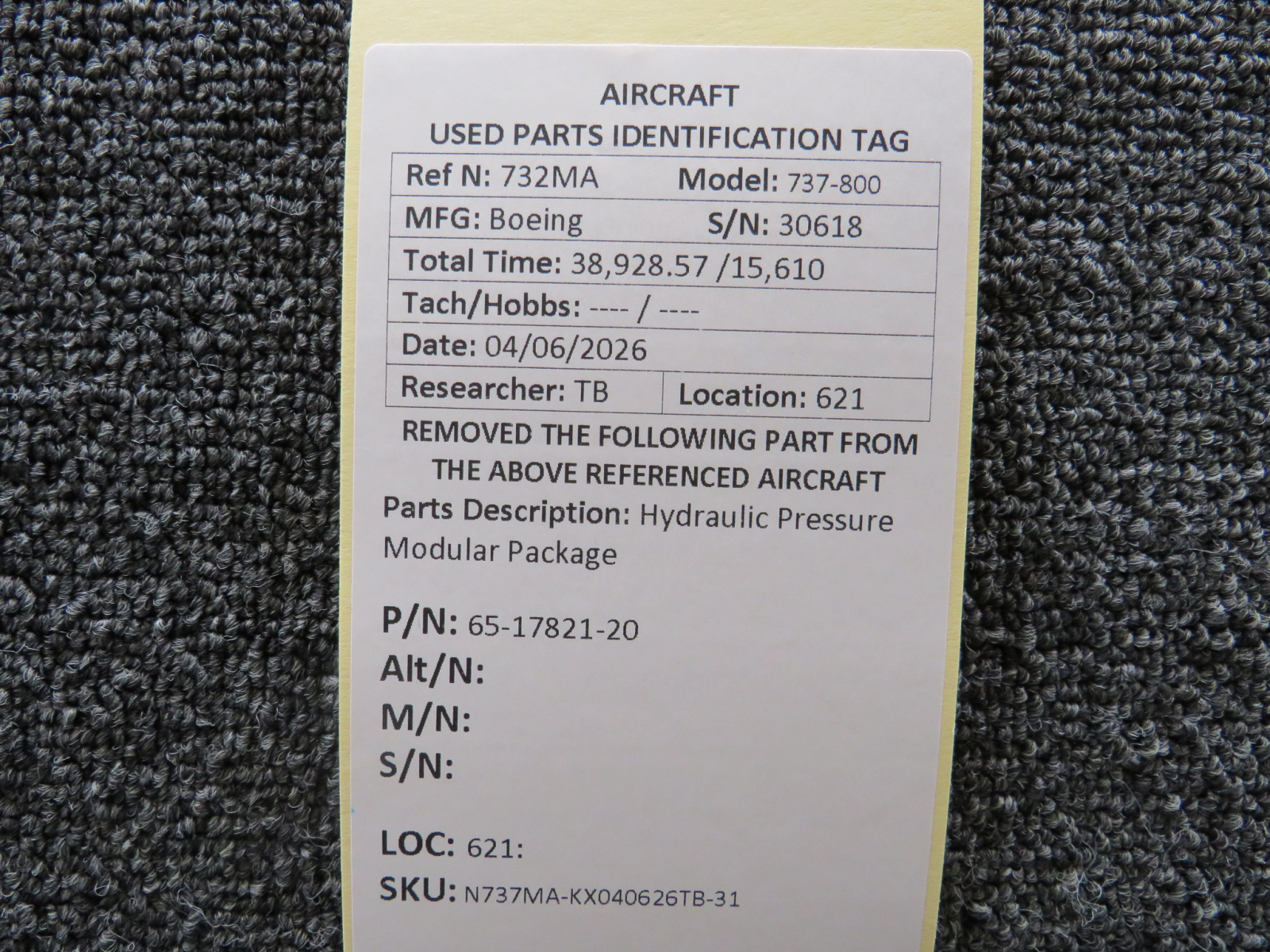 Every part is carefully inspected throughout our process and several times before it goes online. Most items are sold as-removed, just as they came off the aircraft. These parts are not functionally tested. What we do provide is clear photos, full traceability when available, pricing that reflects the as-removed condition, and a no-nonsense 90-day return window.