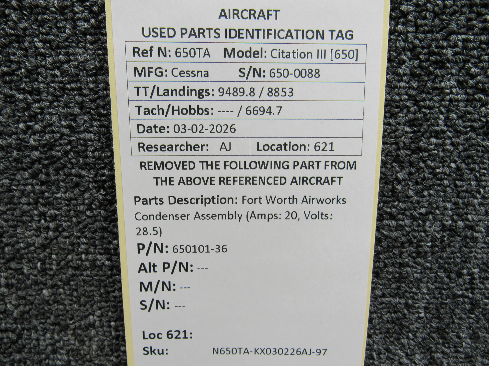 Every part is carefully inspected throughout our process and several times before it goes online. Most items are sold as-removed, just as they came off the aircraft. These parts are not functionally tested. What we do provide is clear photos, full traceability when available, pricing that reflects the as-removed condition, and a no-nonsense 90-day return window.