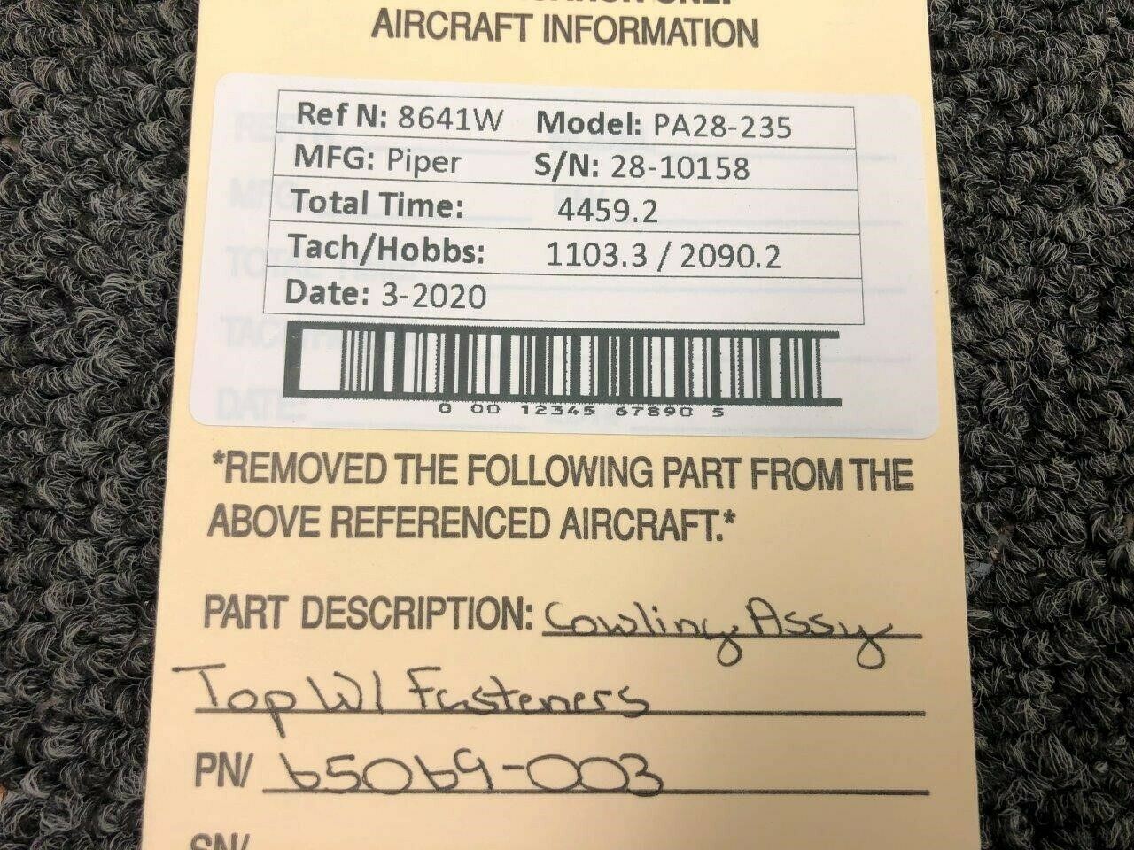 65069-003 Piper PA28-235 Top Cowling Assy W/ Fasteners