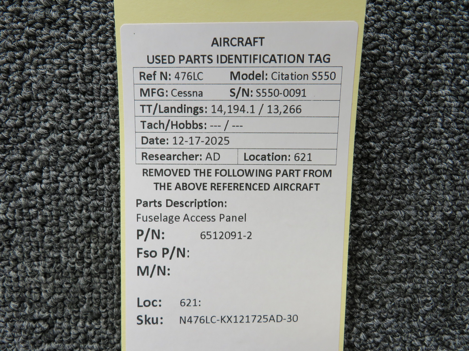 Unless specifically noted, most of our used airplane parts are sold in the condition they were removed, which means you should expect the usual signs of wear and tear.