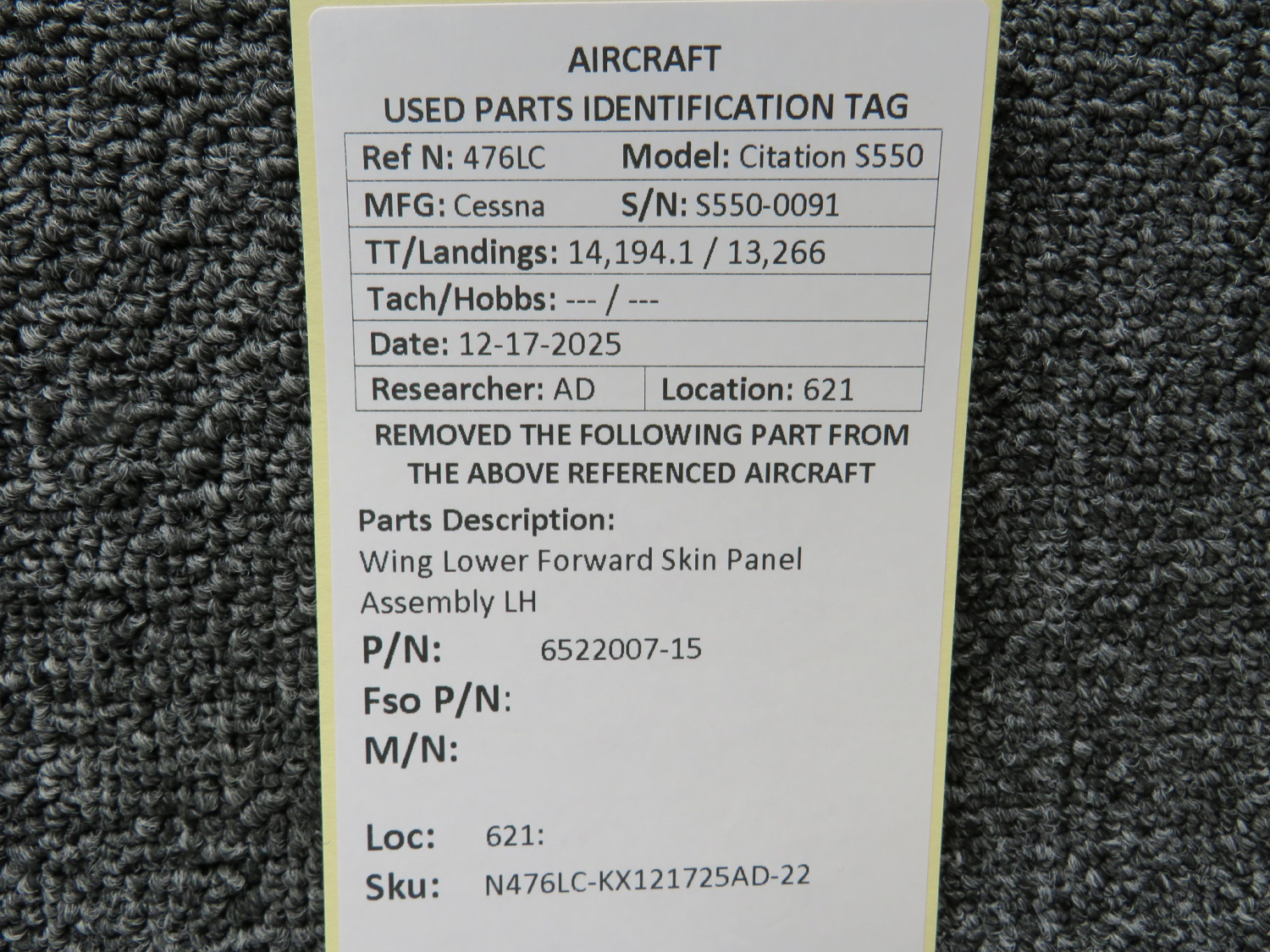 Unless specifically noted, most of our used airplane parts are sold in the condition they were removed, which means you should expect the usual signs of wear and tear.