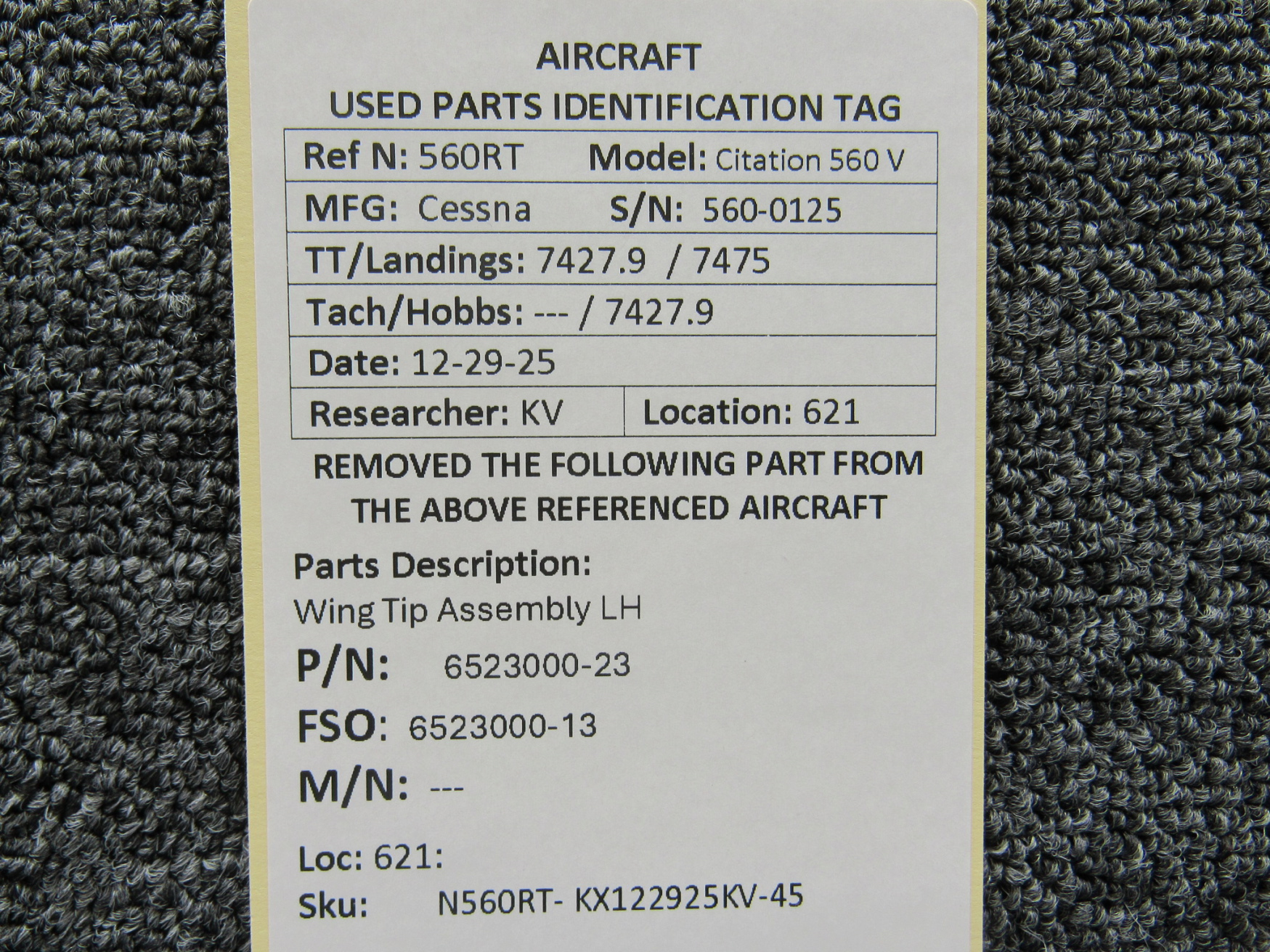 Unless specifically noted, most of our used airplane parts are sold in the condition they were removed, which means you should expect the usual signs of wear and tear.