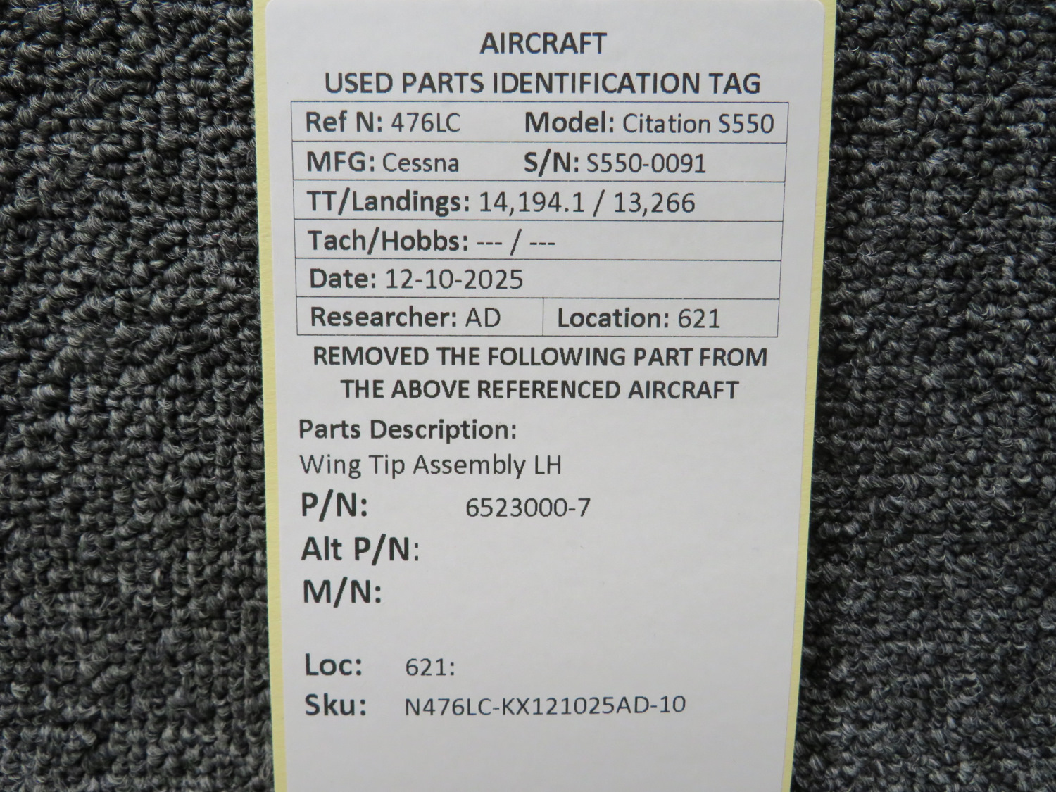 Unless specifically noted, most of our used airplane parts are sold in the condition they were removed, which means you should expect the usual signs of wear and tear.