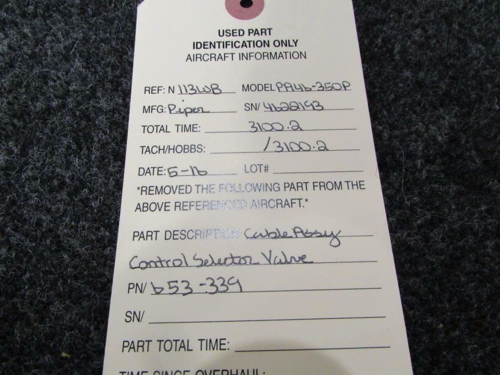 653-339 Piper PA46-350P Cable Assy Control Selector Valve