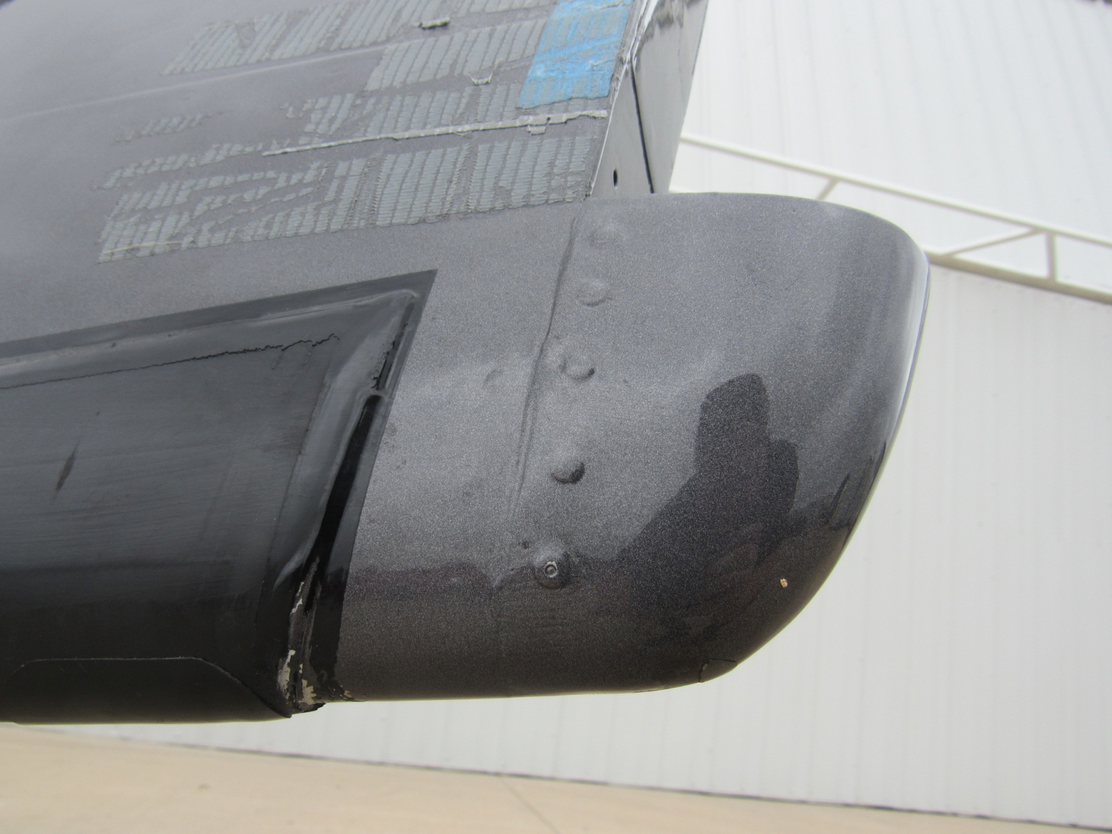 - Duct tape and duct tape residue on stabilizer tip